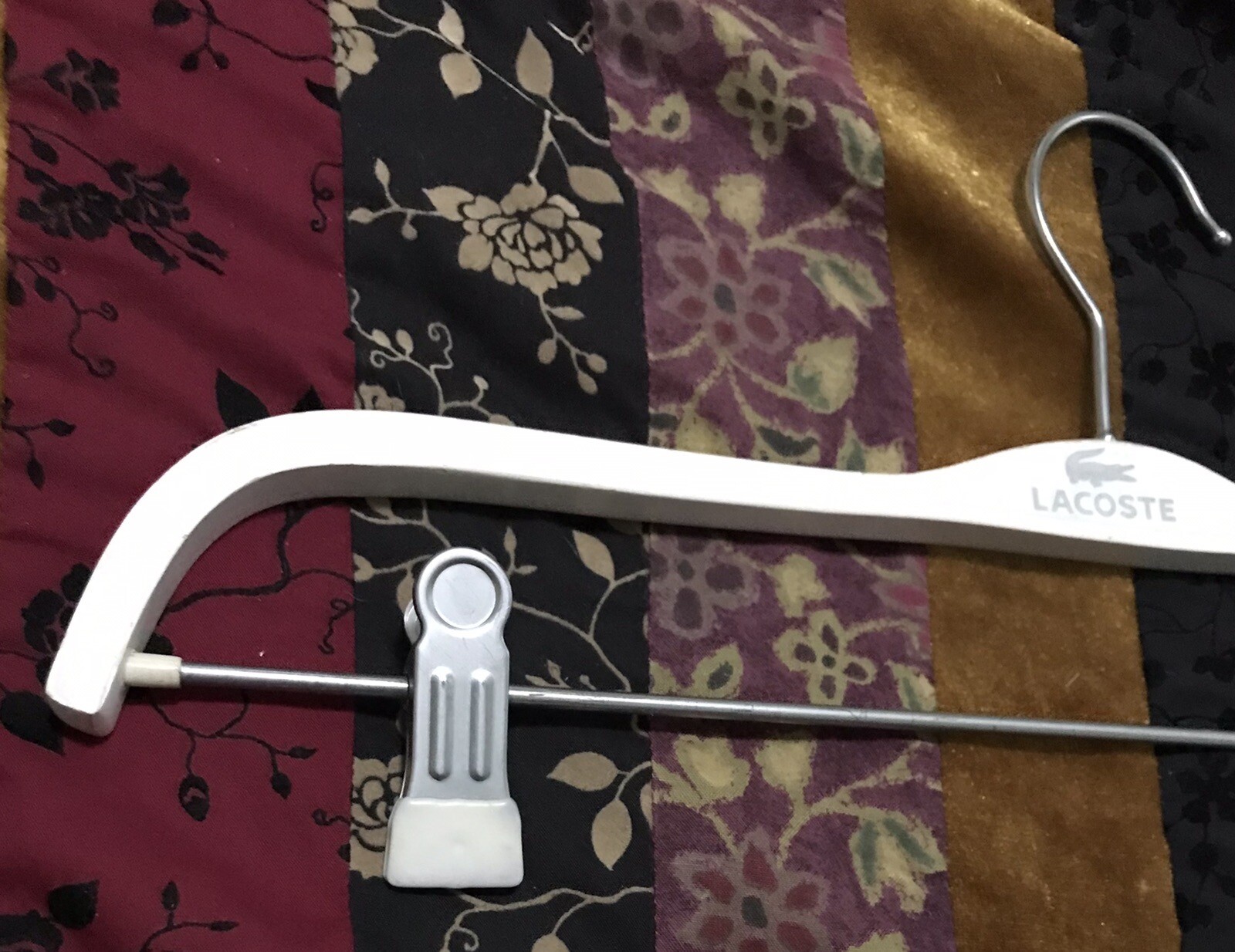 Lacoste White Vintage Rare 15in Wooden Shirt Pants Hanger