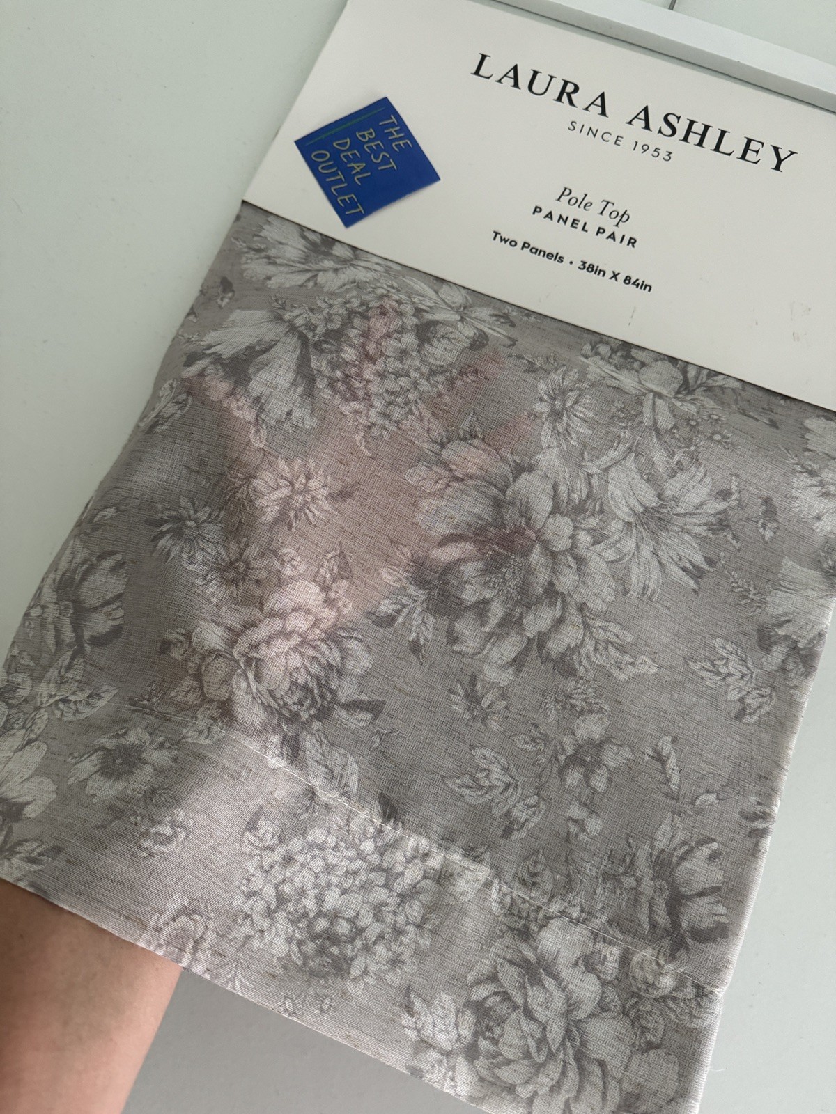 как выглядит Laura Ashley Window Curtains 2 Panels 38 x 84 Gray Sheer Linen Bridgette Taupe фото