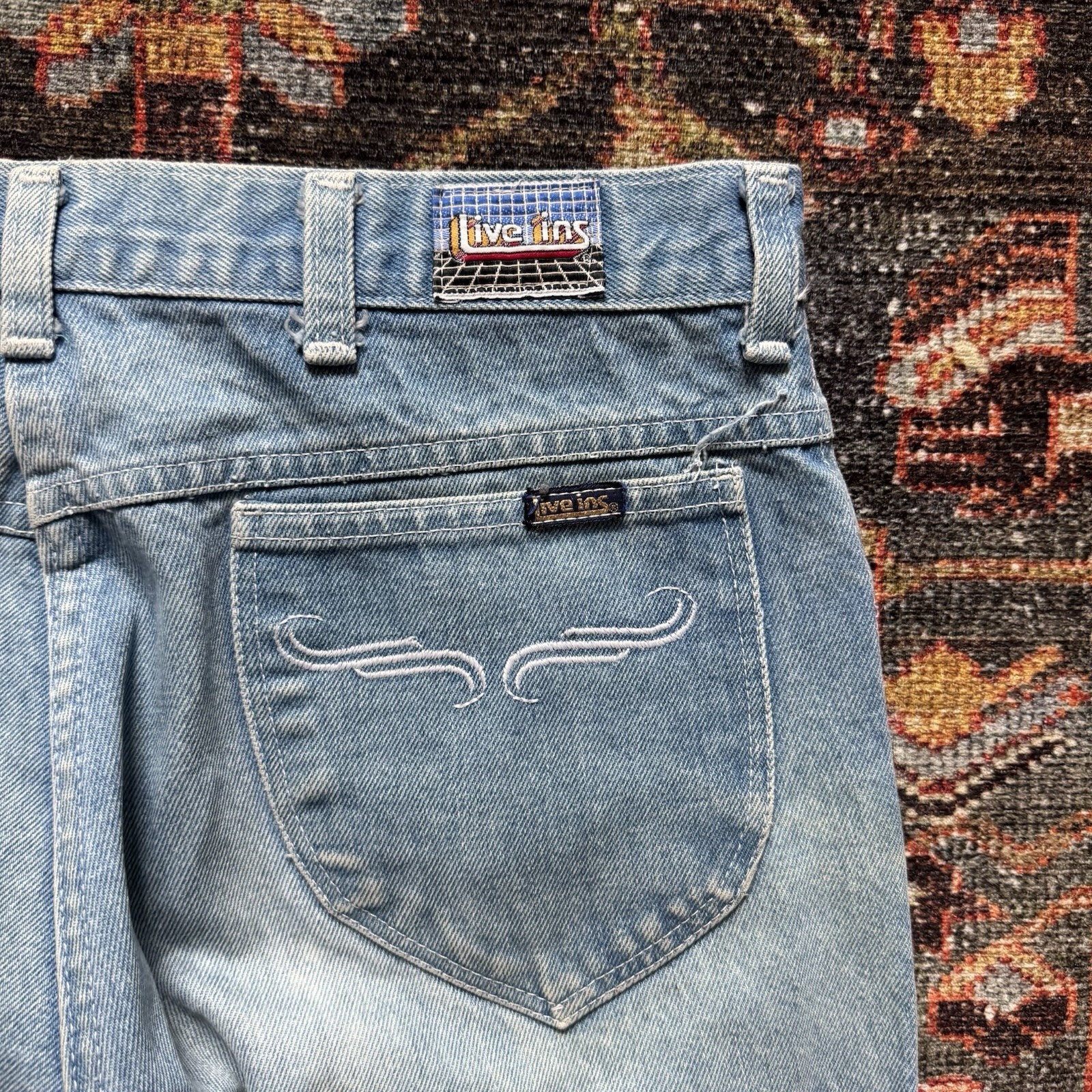 как выглядит Vintage 70s women s light wash live in flared Bell Bottom blue jeans size 28 фото