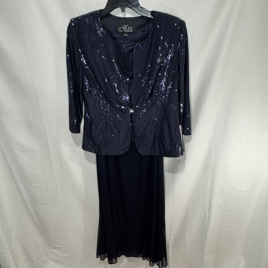 NWT Alex Evenings Womens MOB Gown Size 10 Navy Blue Sequins Elegant Formal