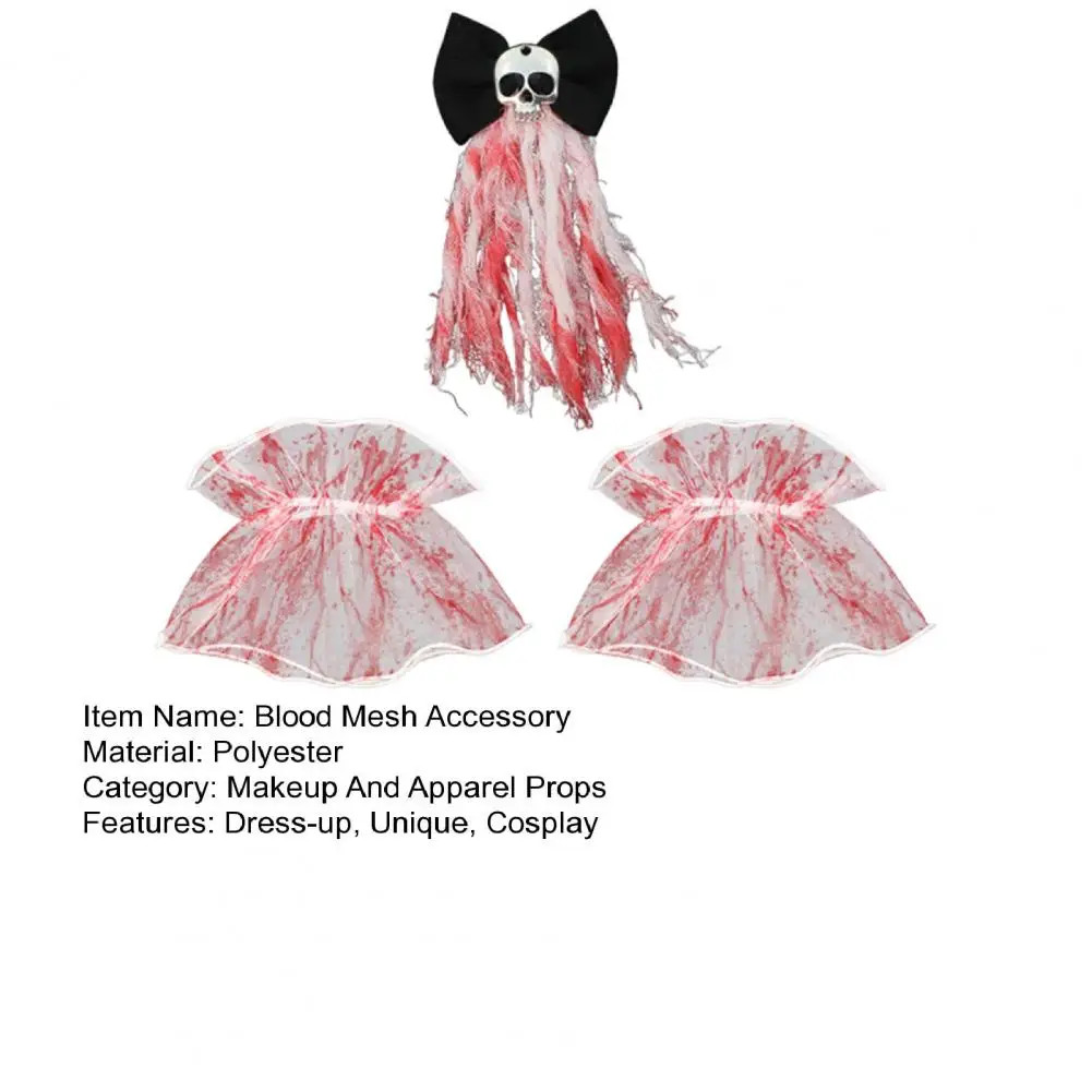 Halloween Blood Mesh Short Fingerless Wrist Gloves Spooky Skull Bow Hairpins