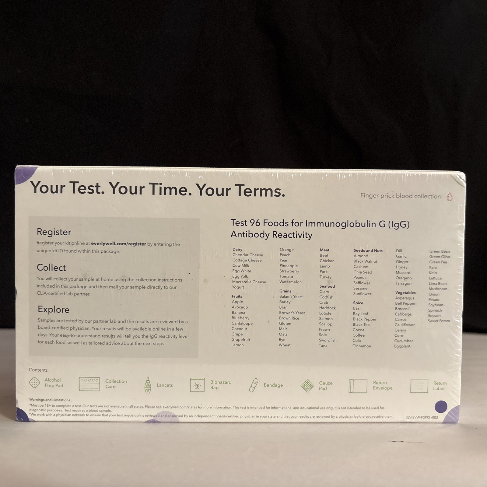 Everlywell Food Sensitivity Test Kit Test 96 Foods SEALED EXP 02/2026