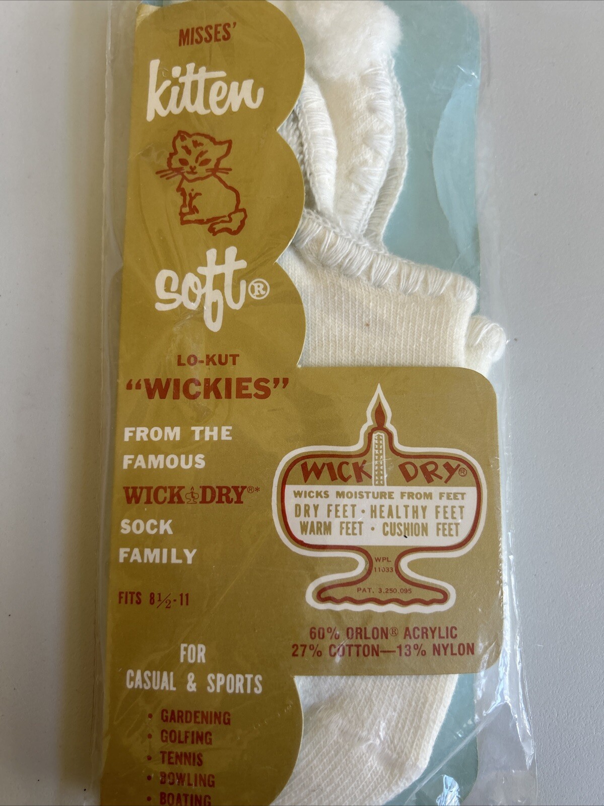 Womens VTG Kitten Soft Low Cut Wickies Socks White Pom Orlon Acrylic Size 8.5-11
