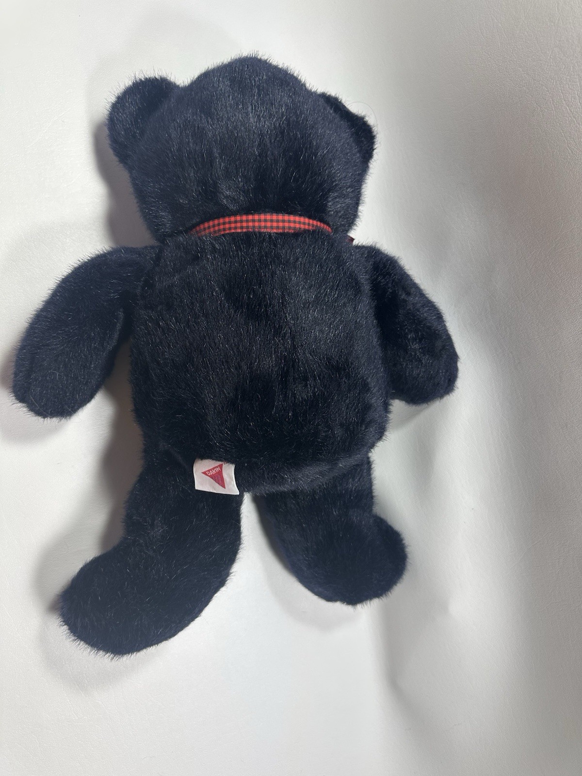как выглядит Vtg Dakin Teddy Bear 18" Plush Black And Tan Stuffed Animal Red Gingham Bow 1992 фото