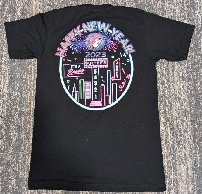 Buc-ees Happy New Year 2023 Glow in Dark Tshirt Color Black Size Medium