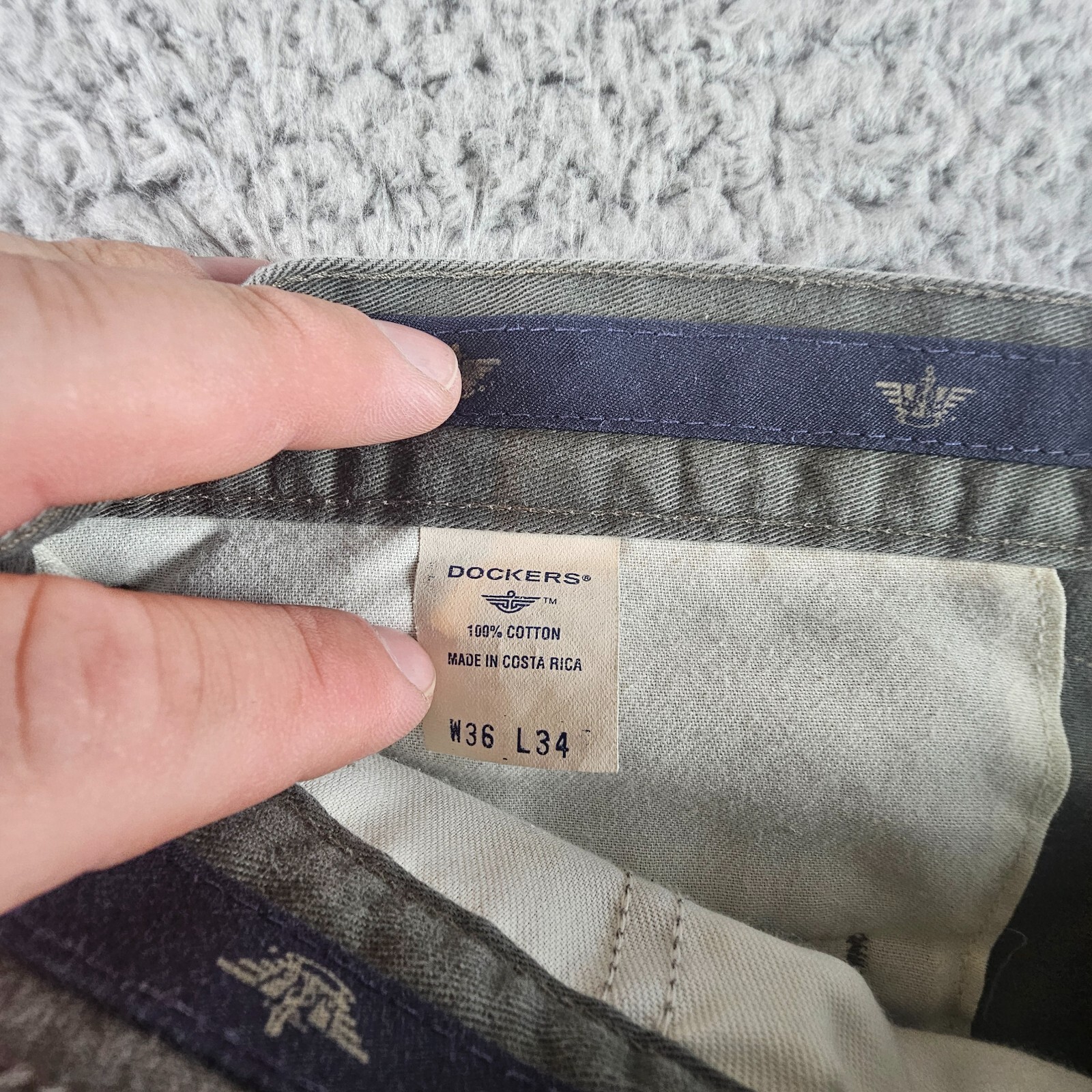 Vintage Dockers Pants Mens 36x33 Gray Chino Pleated Business Casual Preppy Y2K