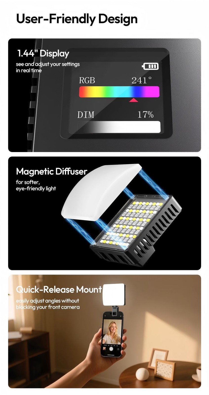как выглядит Ulanzi 10W LED Pocket RGB Video Light 1800K-9000K for Phone Camera Tripod Vlog фото