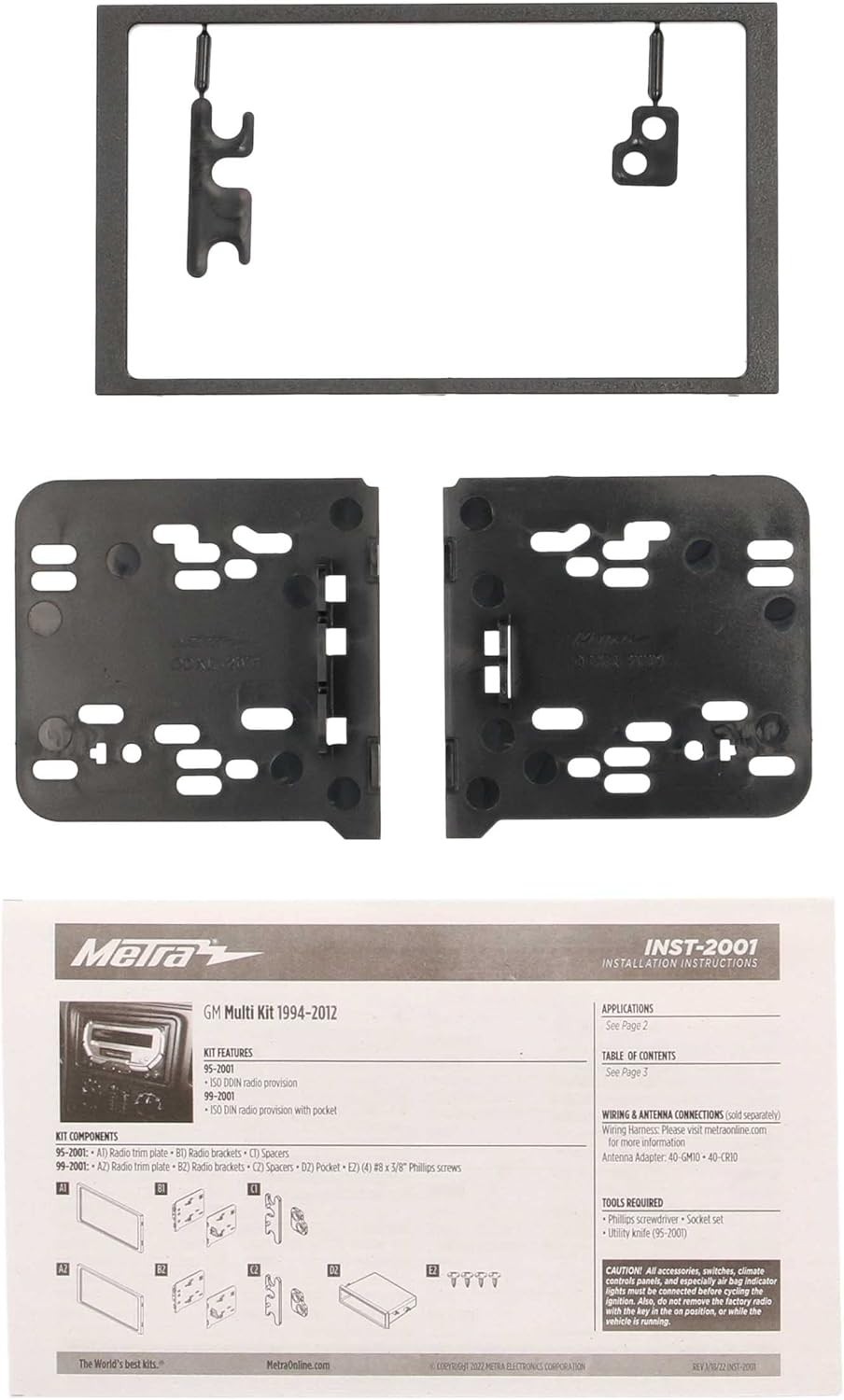 Metra 95-2001 Double DIN Dash Kit Fits 1994 2012 GM Vehicles Black Mounting Kit