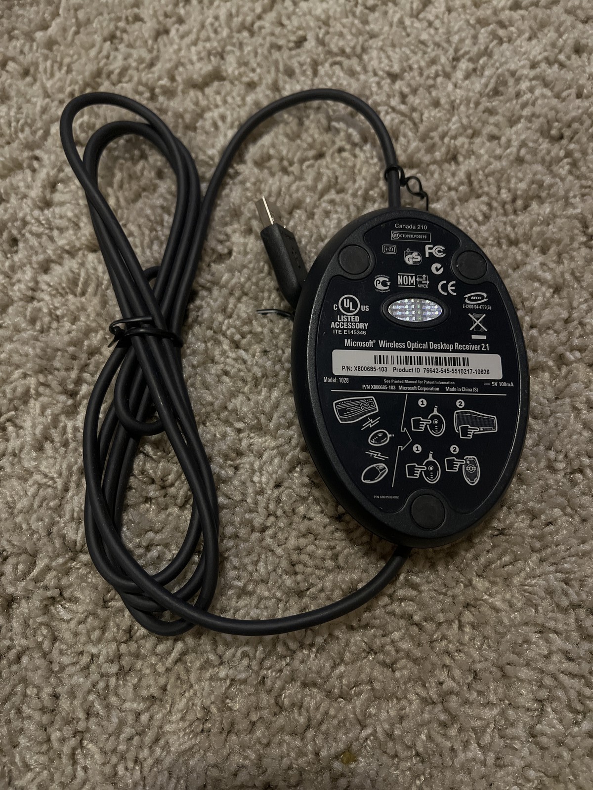 3D Microsoft 1028 Wireless Optical Desktop Receiver USB for Mouse Keyboard