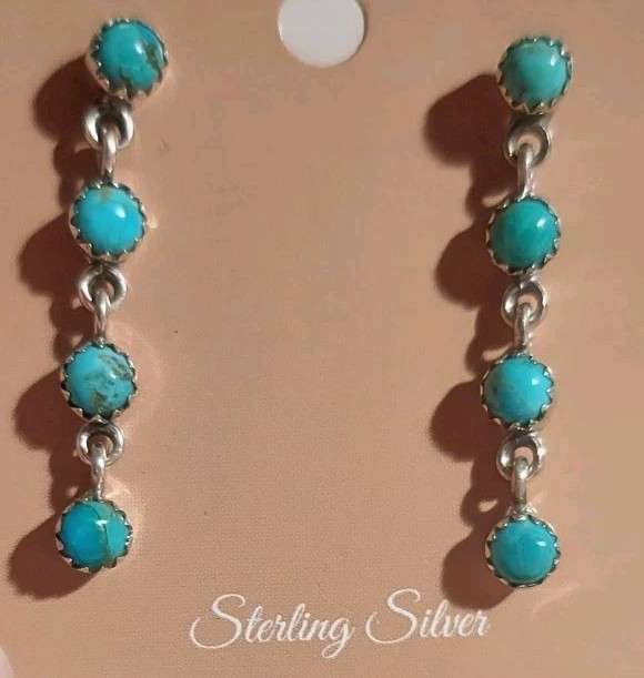 как выглядит New Sterling Silver Turquoise Long Dangle Earrings фото