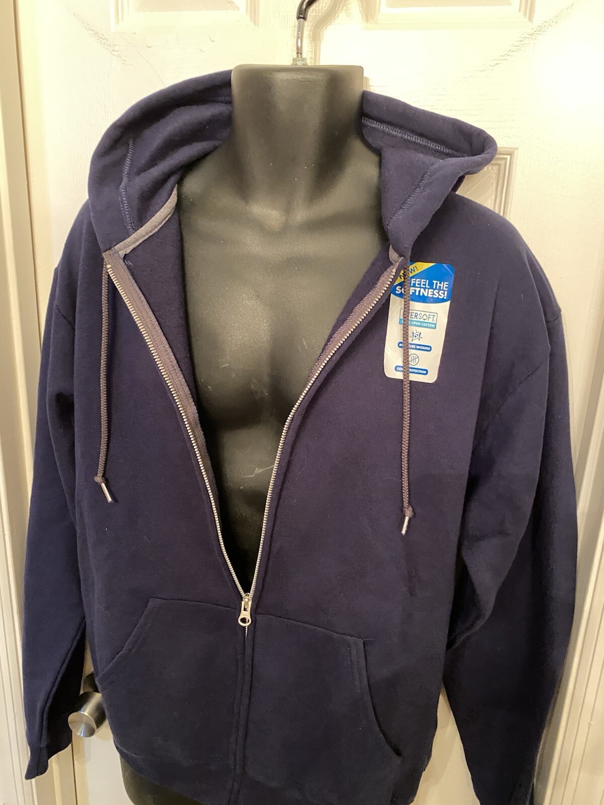 как выглядит Fruit of the Loom Mens Large EverSoft Fleece Full Zip Hoodie Jacket Navy фото