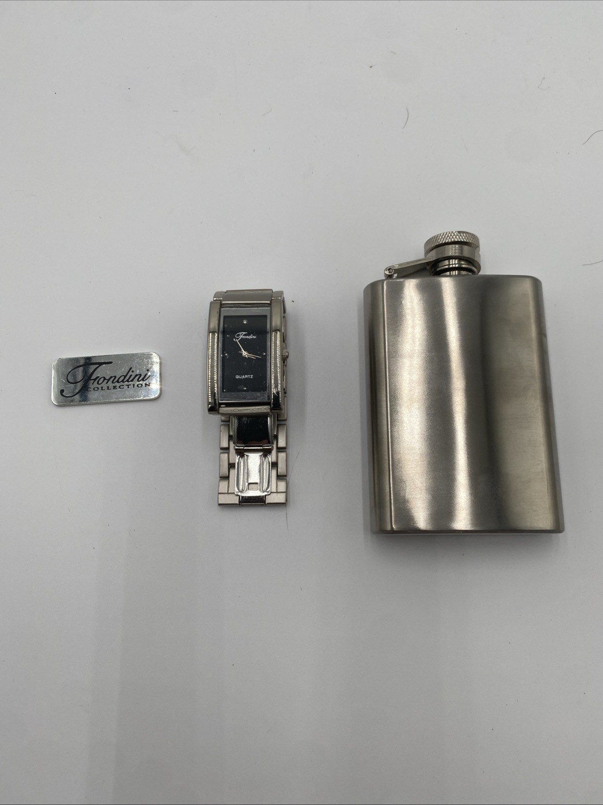 Fondini Quartz Watch Flask Gift Set Stainless Steel Groomsmen Gift