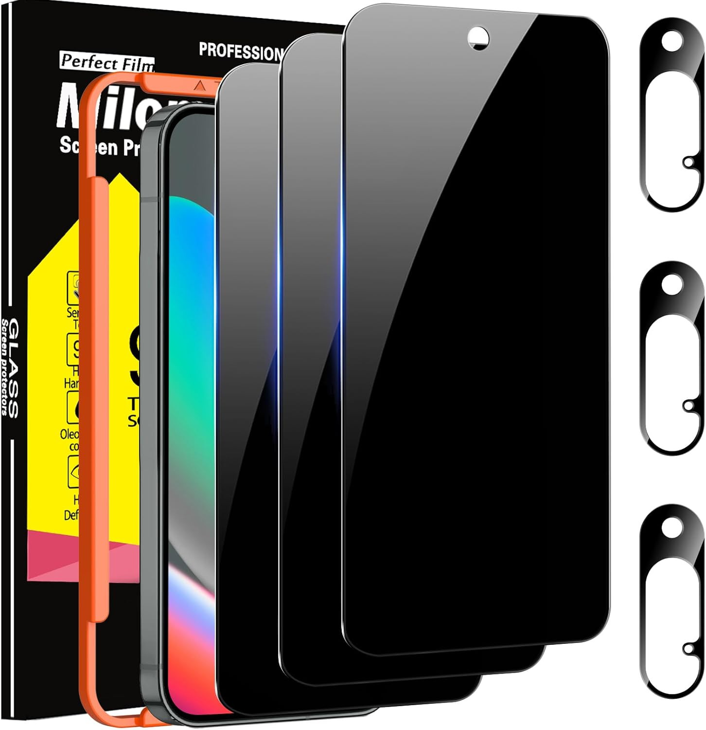 Whats in the box: [3ⅩTempered glass Privacy Screen protector] [3ⅩGlass Camera Prote