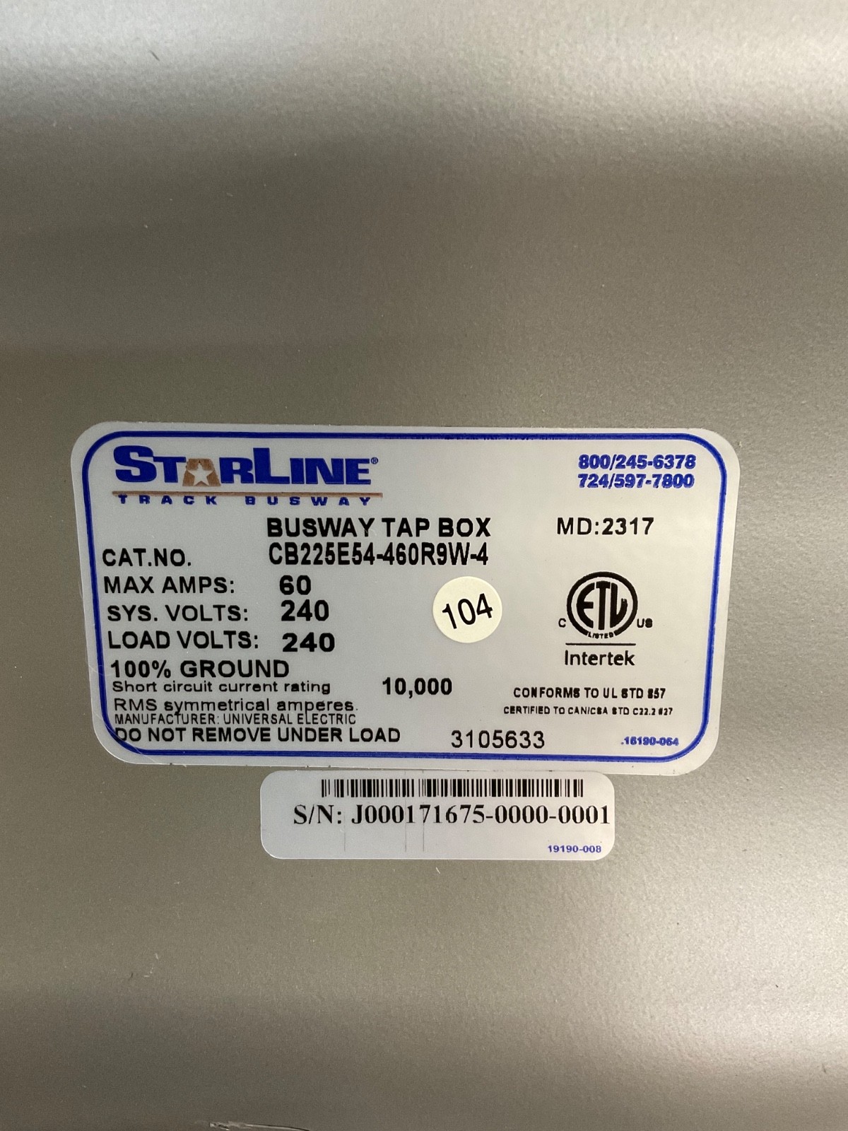 STARLINE CB225E54-460R9W-4 T3 Busway Tap Box 60 Amp 240 Volt 10Kva
