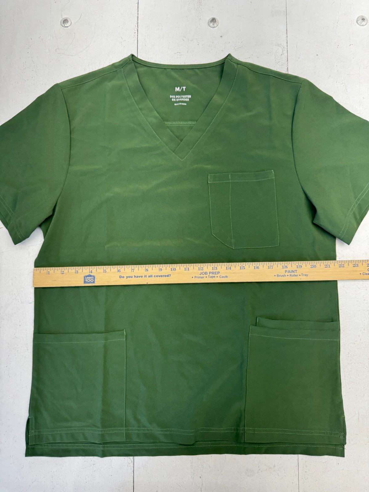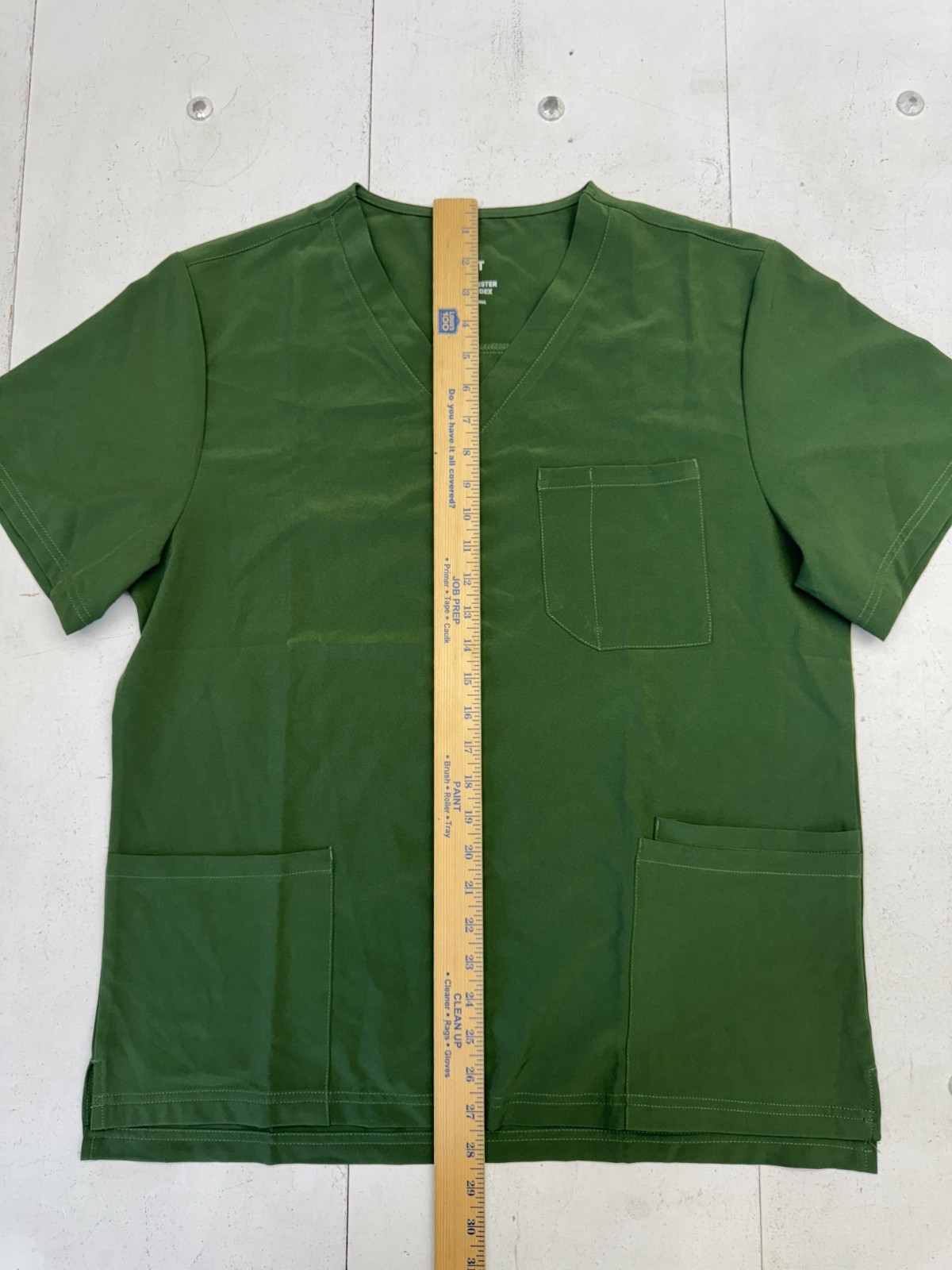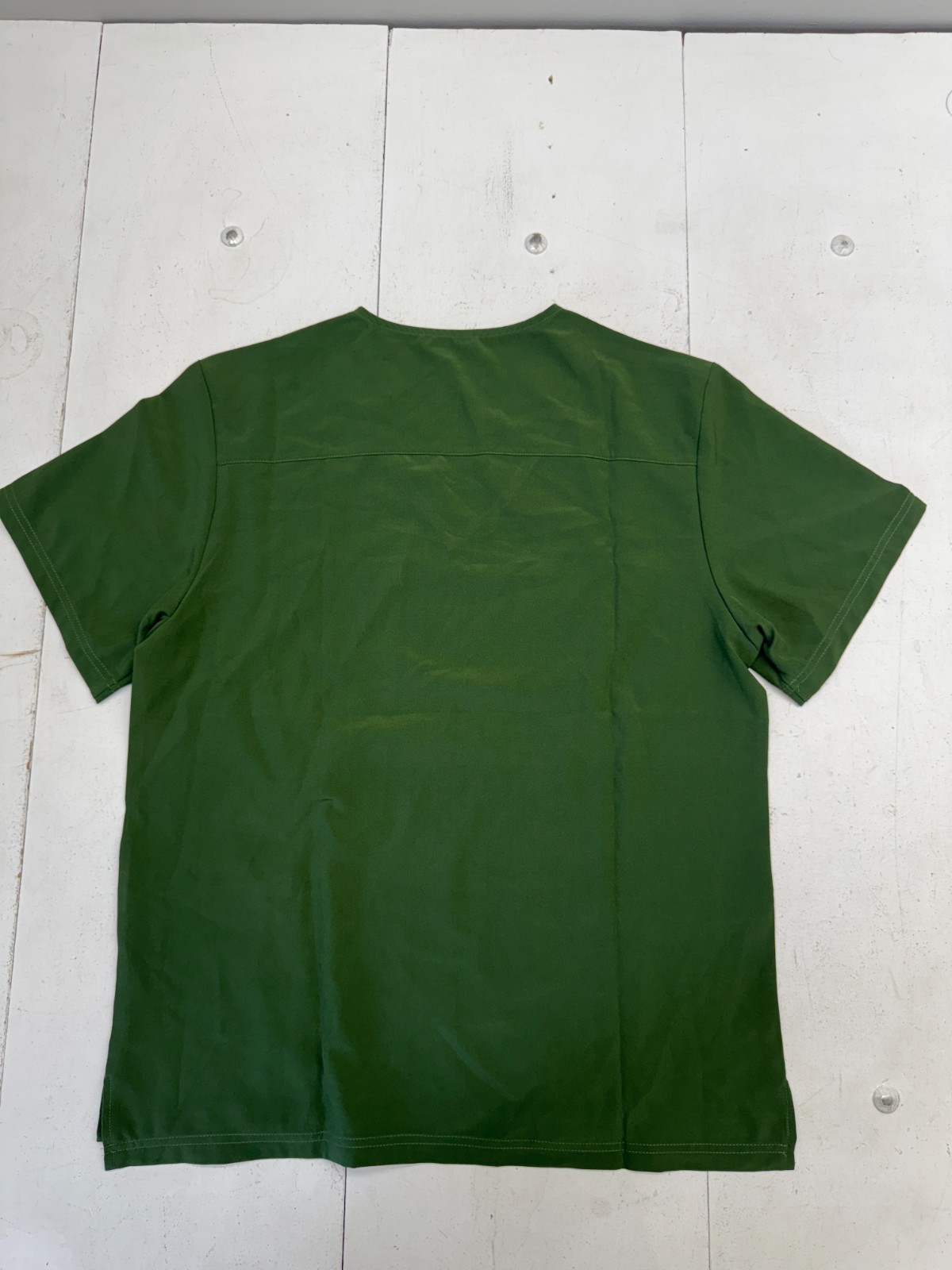 как выглядит Basic Solid Green Short Sleeve V Neck Scrub Top Unisex Adults Size Medium фото
