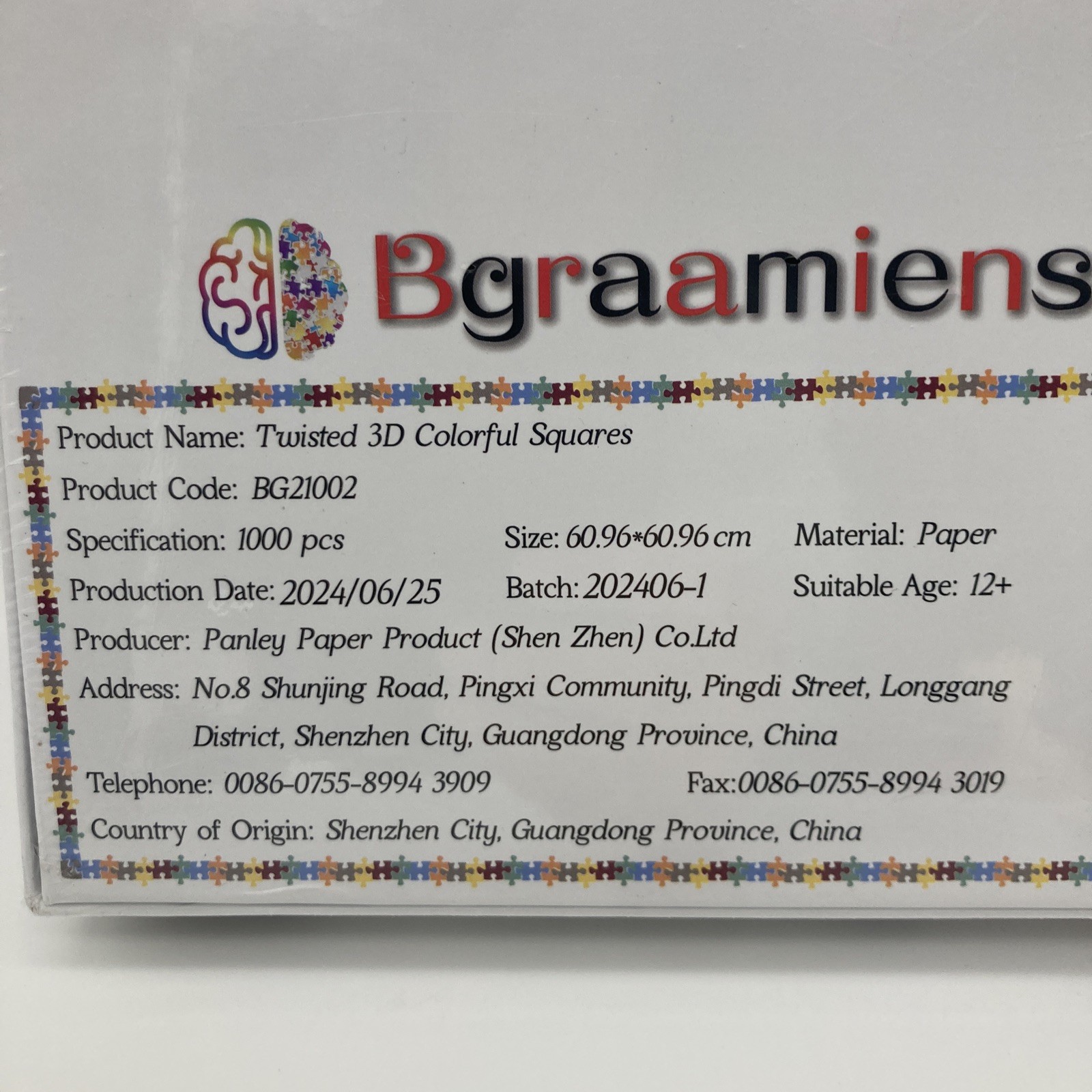 BGRAAMIENS Brain Games Twisted 3D Colored Squares 1000 Piece Jigsaw Puzzle New