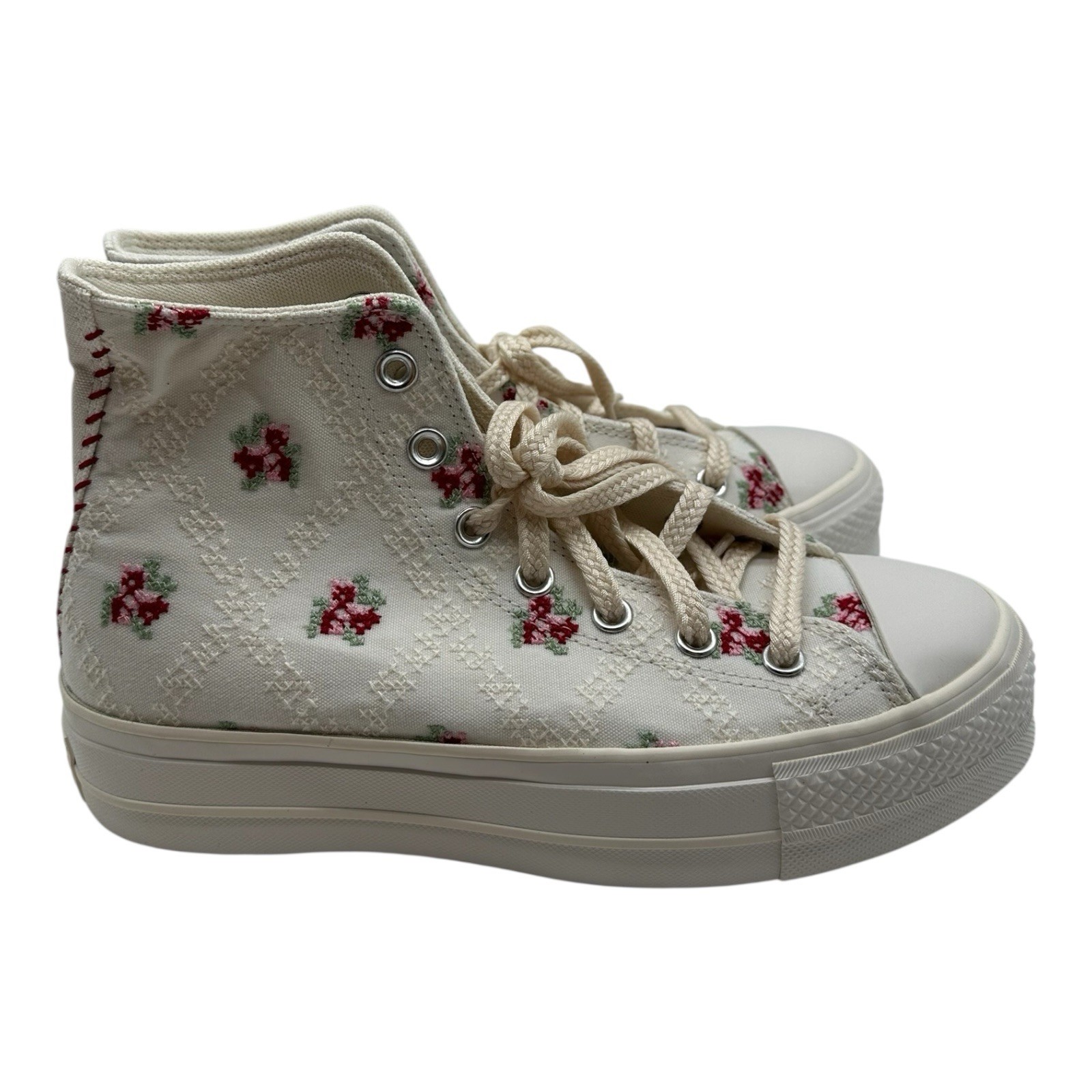 Converse Chuck Taylor All Star Hi Lift Shoes Womens Sz 8 White Rose Cross Stitch