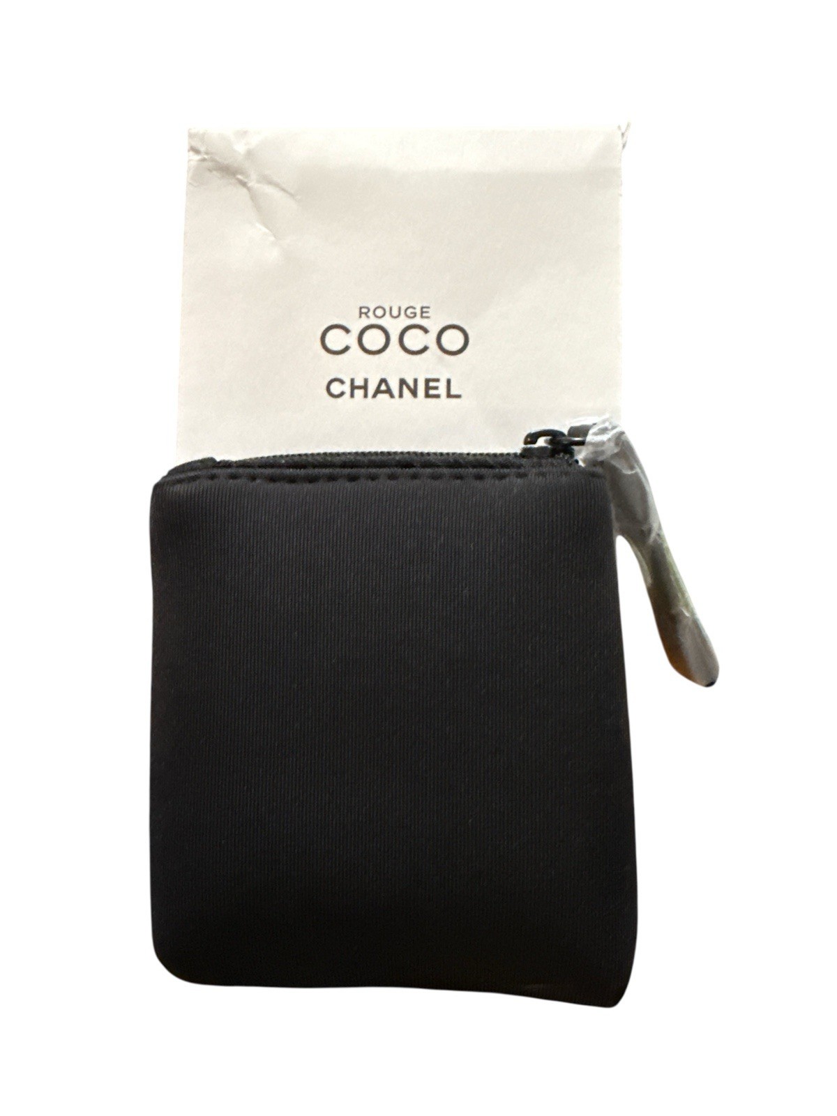 New In Box Neoprene Rouge Coco Chanel VIP Small Zipper Pouch Black Gold