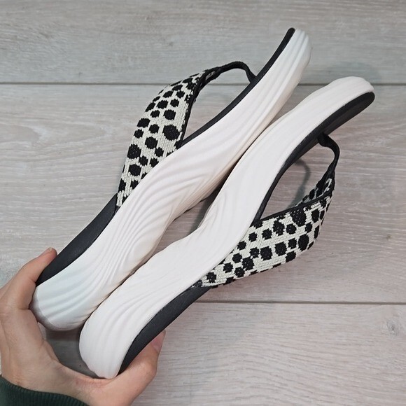 Cloudsteppers By Clarks Women Comforty Black White Flip Flops Sandals Shoes 7M