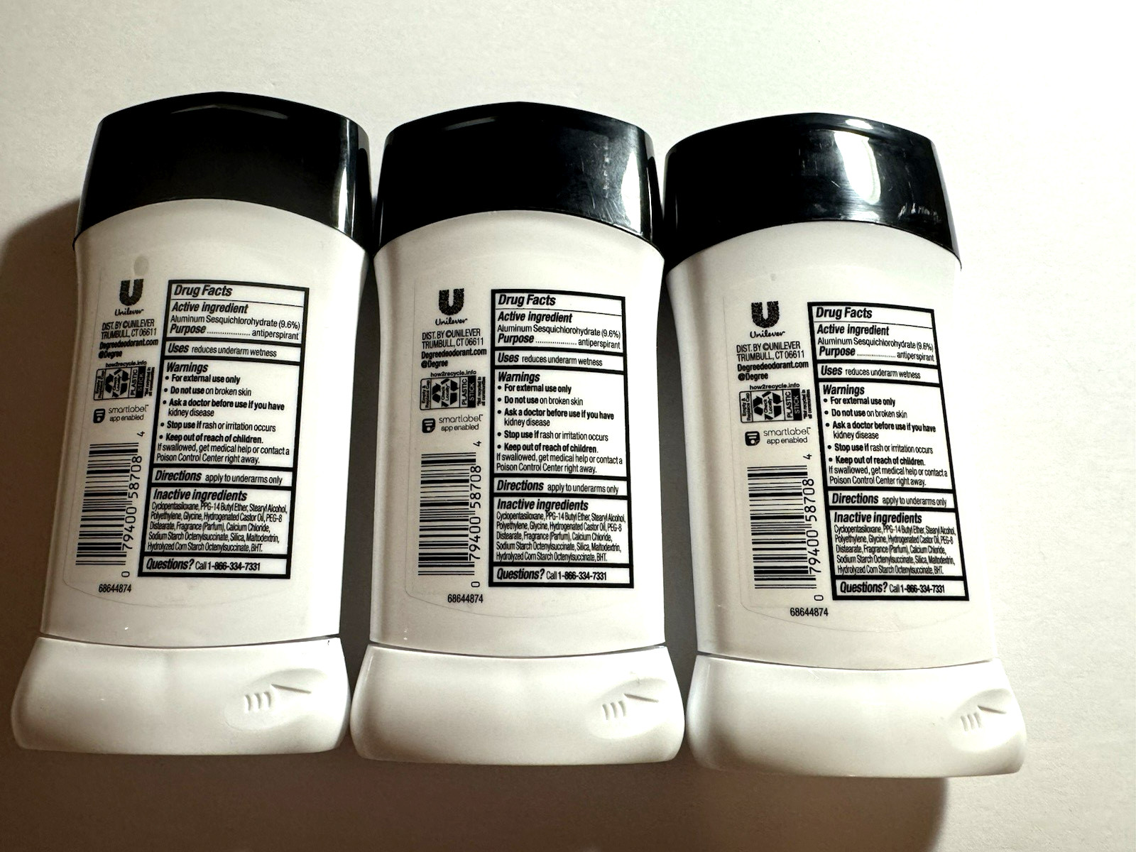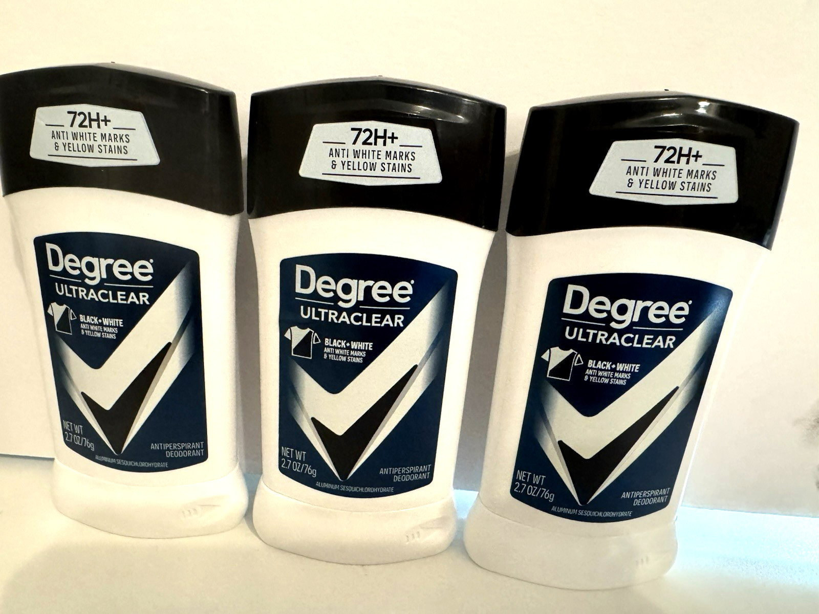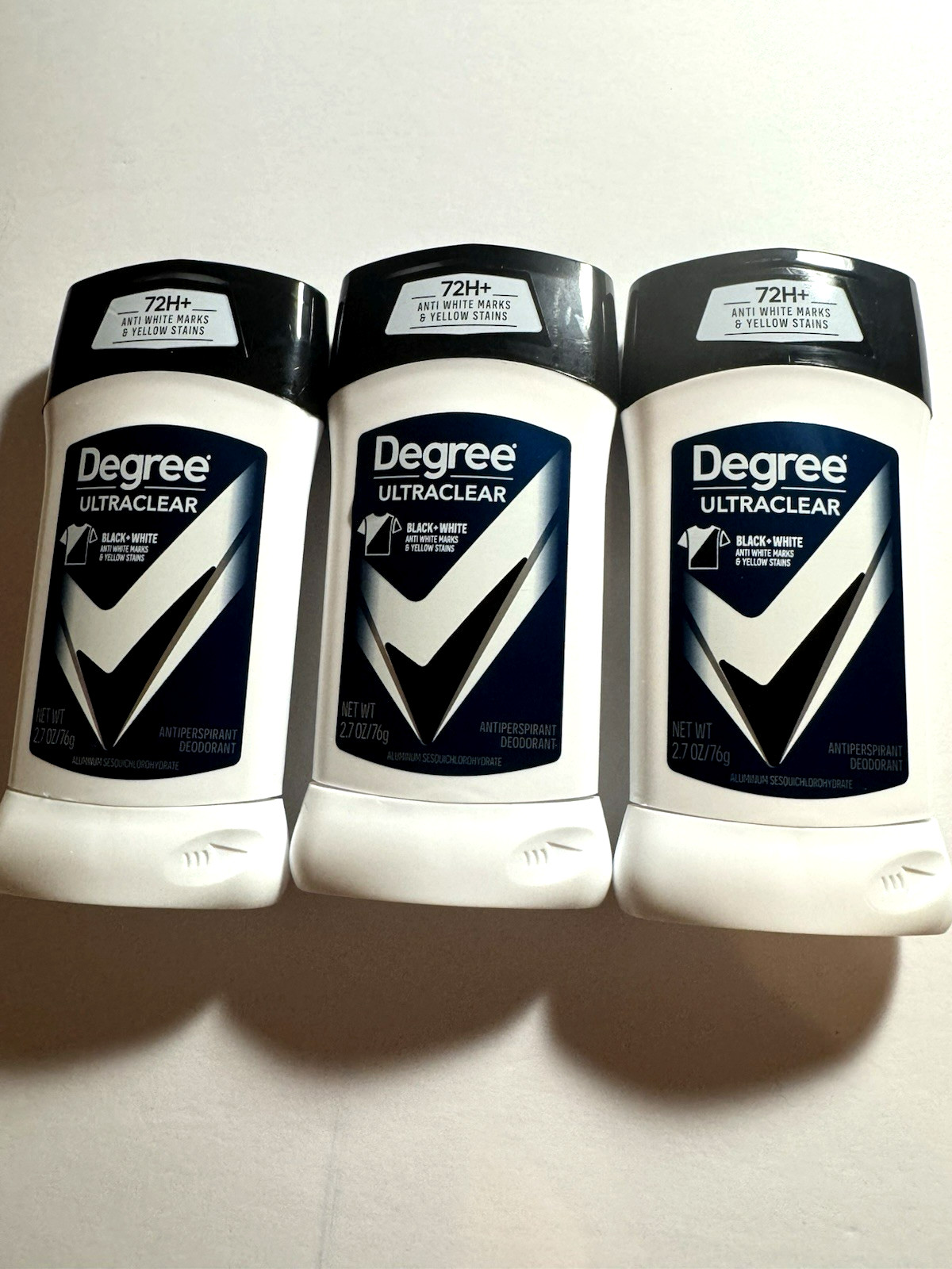 3 Pk 72 Hr Degree Men Ultraclear Antiperspirant Deodorant Black White 2.7 Oz