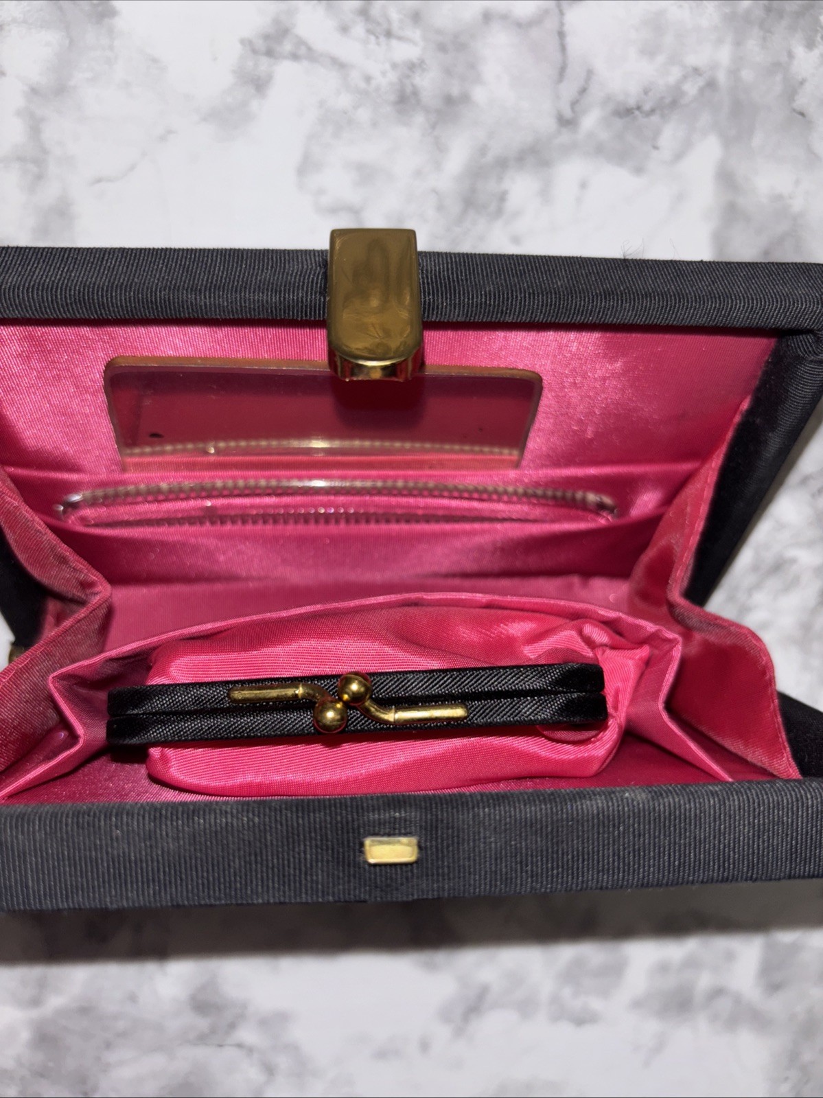 Vintage Tapestry Clutch With Comb, Coin, Purse, And Mirror. Floral Boarder Tree