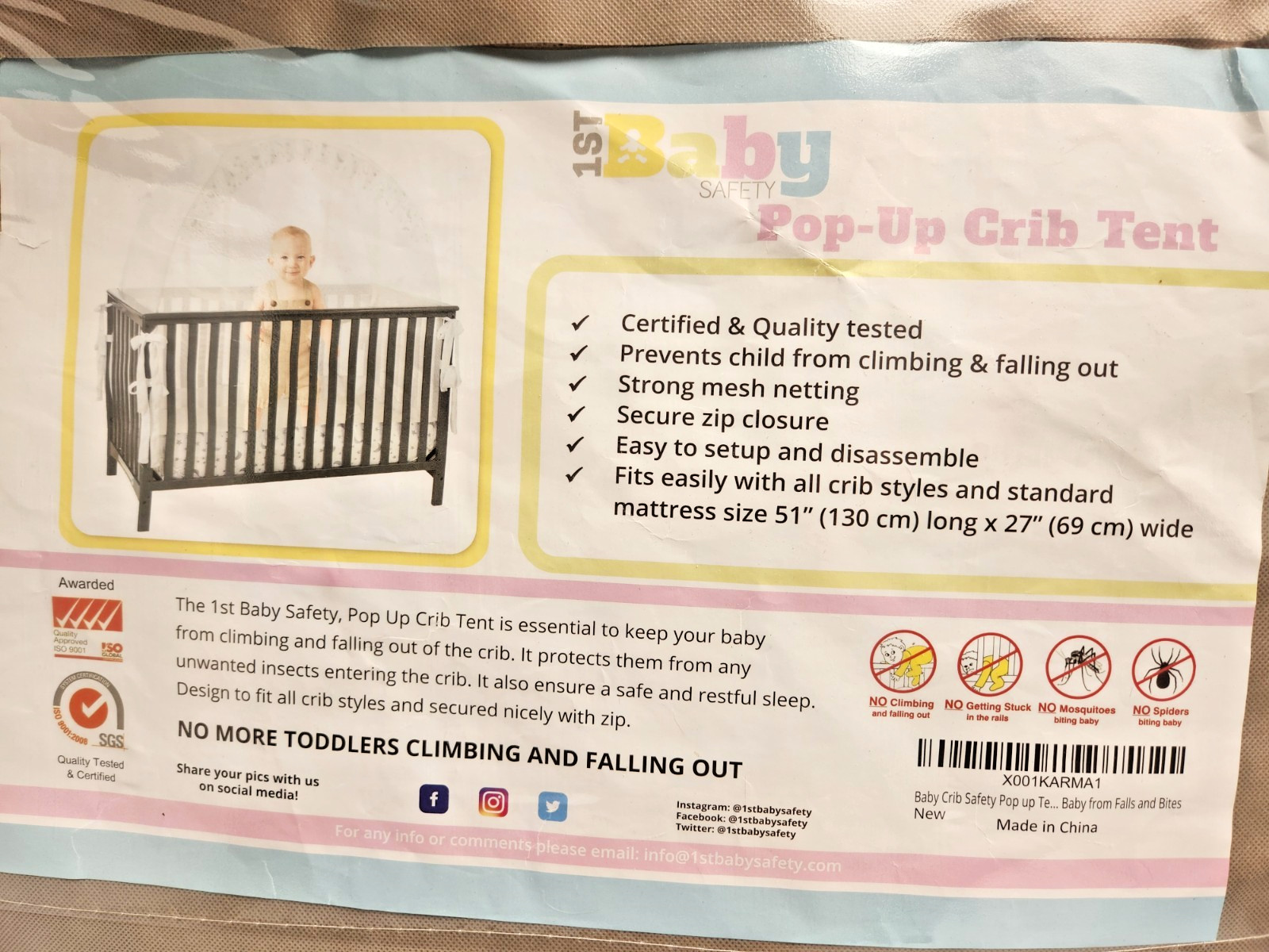 1st Baby Safe Pop Up Crib Tent Canopy Net All Crib Styles Standard Mattress New
