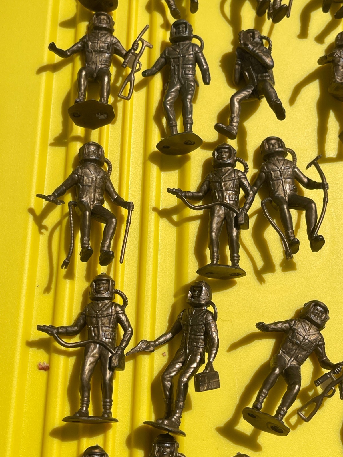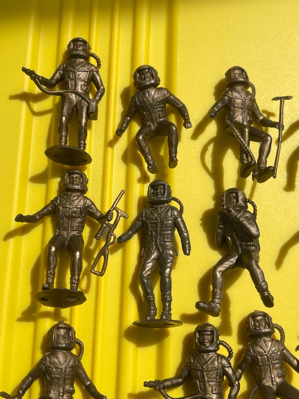 как выглядит Marx MPC Plastic Spacemen Astronauts Figures Lot Bronze Color Lot 32 фото