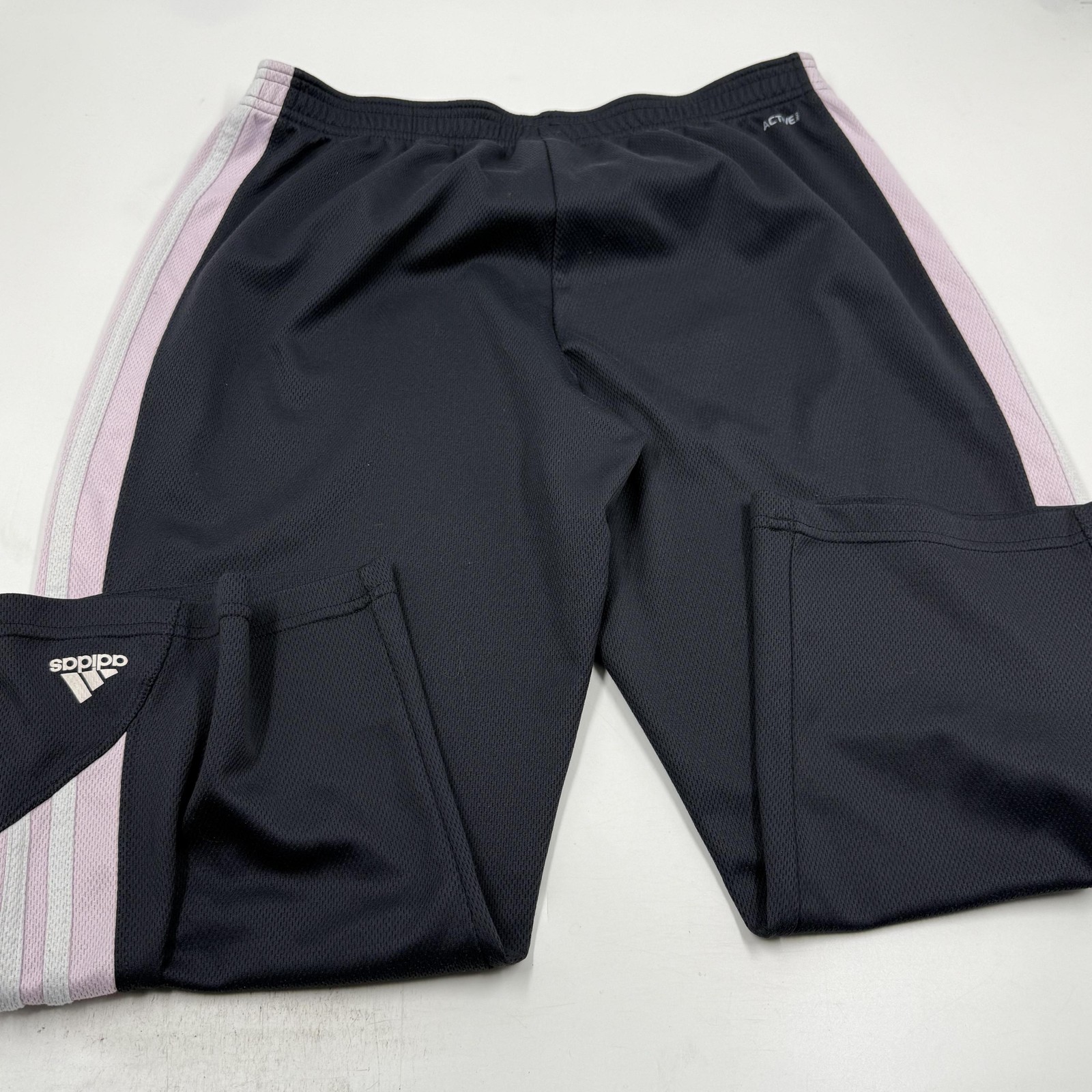 Adidas Pants Womens Medium Black Pink Three Stripe Track Activewear Athletic