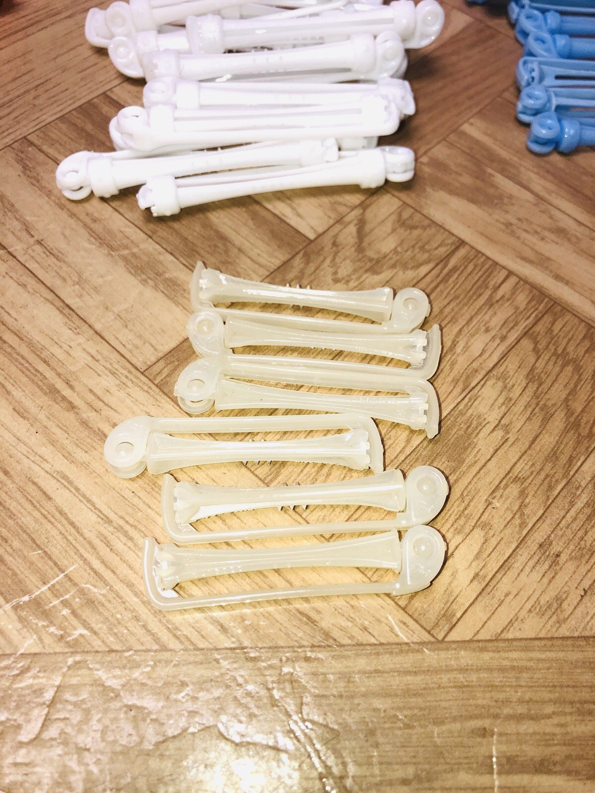 как выглядит Vintage Lot of 116 Plastic Swing Arm Clip Perm Rods Ass