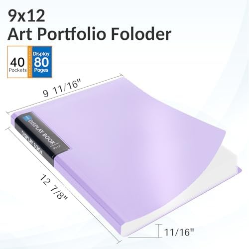 Art Portfolio 9x12, 40 Pockets Large Display Folder with 80 Pages, Heavy Duty