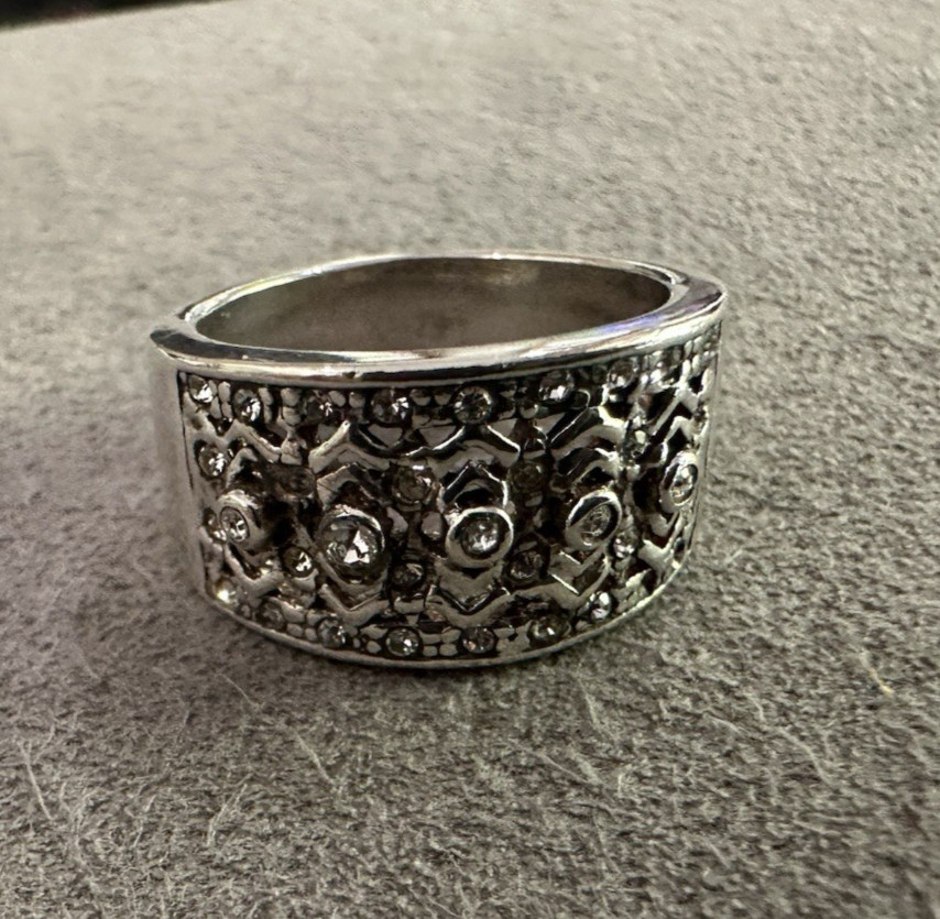 Vintage Sterling Silver Open Cut CZ Band Ring Sz 5.5