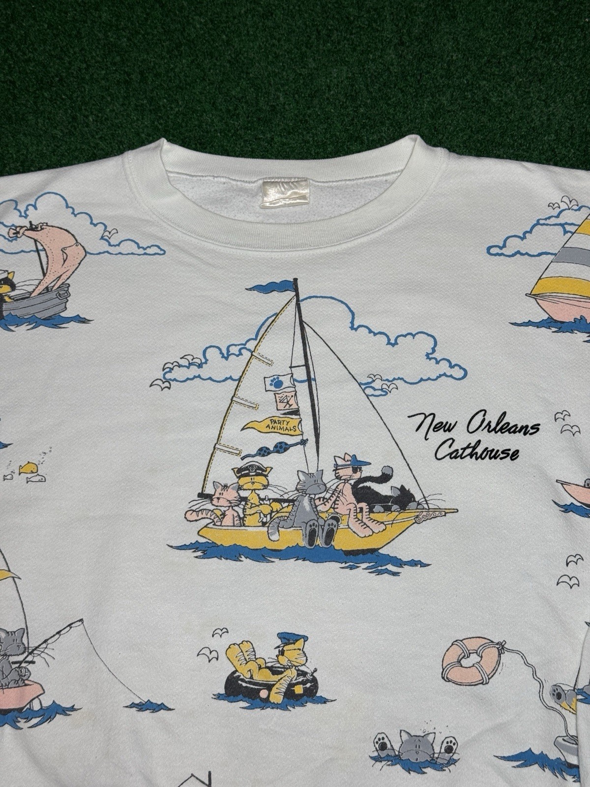 Vintage 80s New Orleans Cathouse Retro Cat Cartoon M/L Womens Sweatshirt