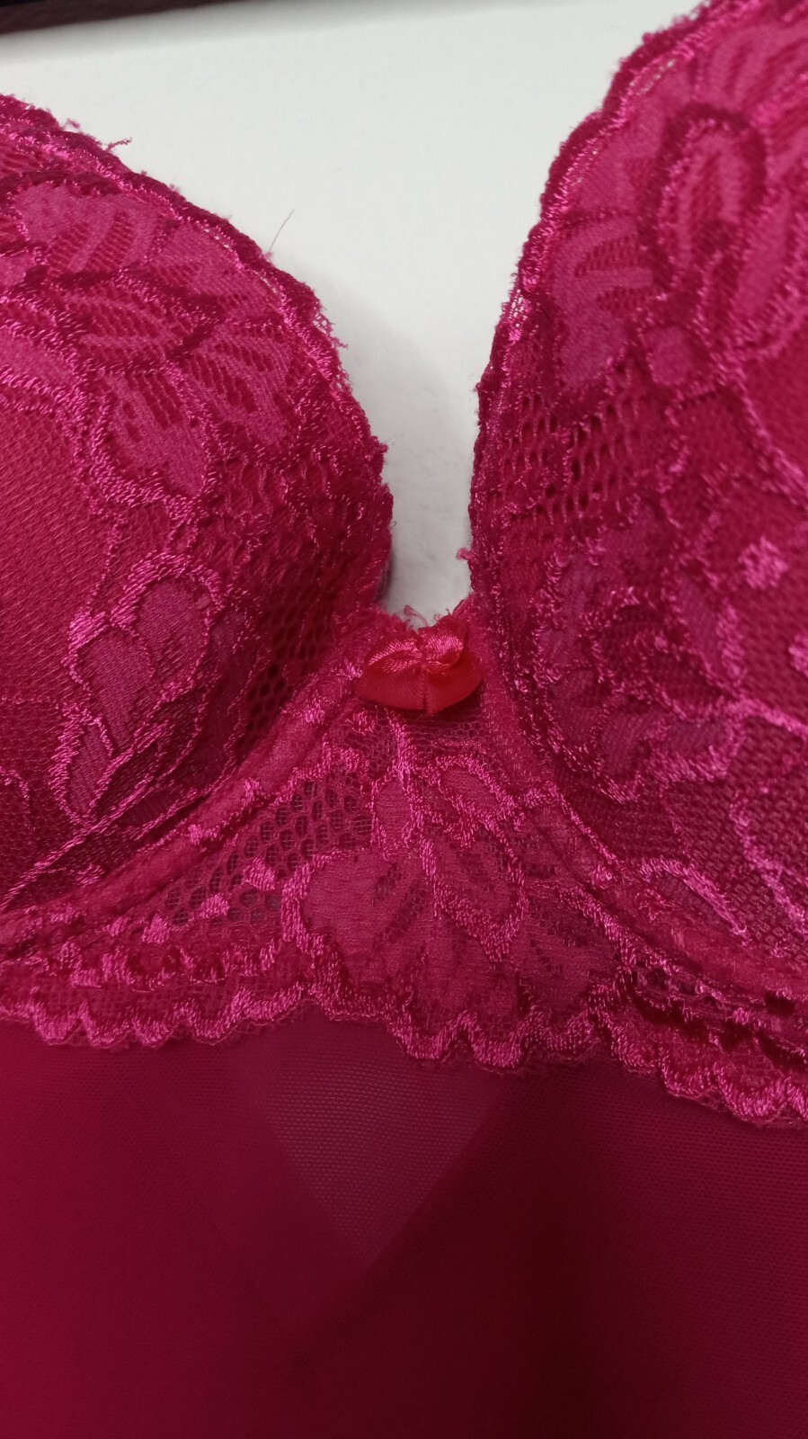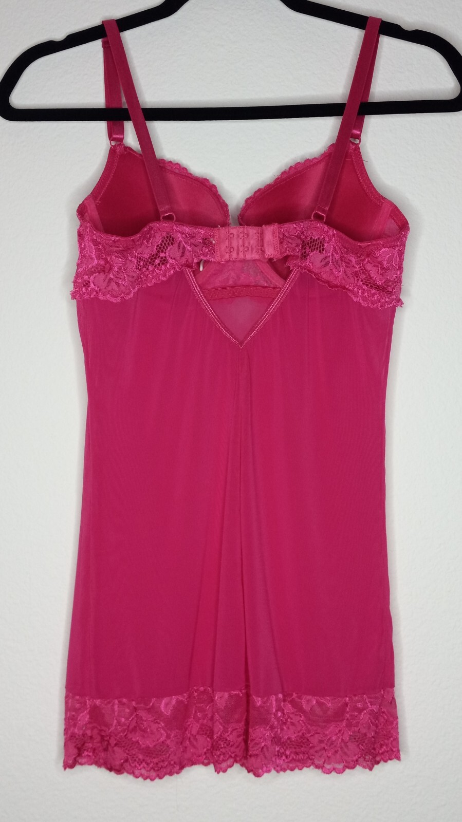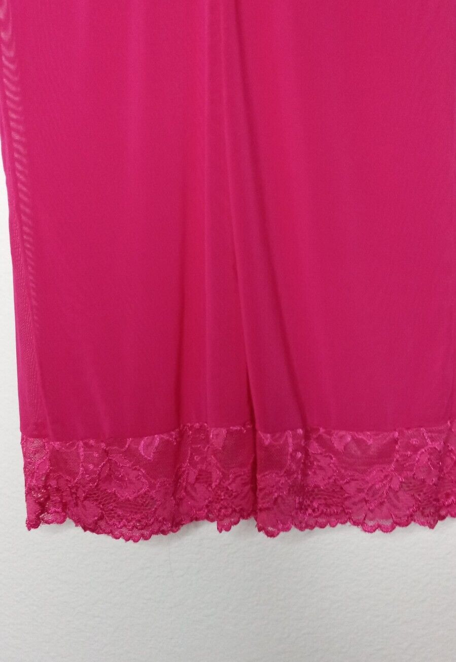 как выглядит Rampage Intimates Women Size M Babydoll Chemise Bright Pink Mesh Lace Trim Dress фото