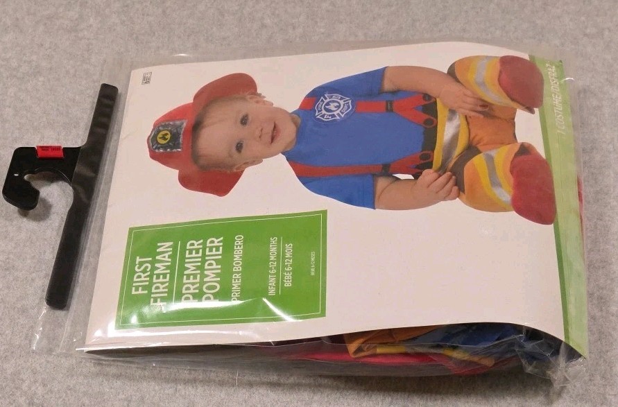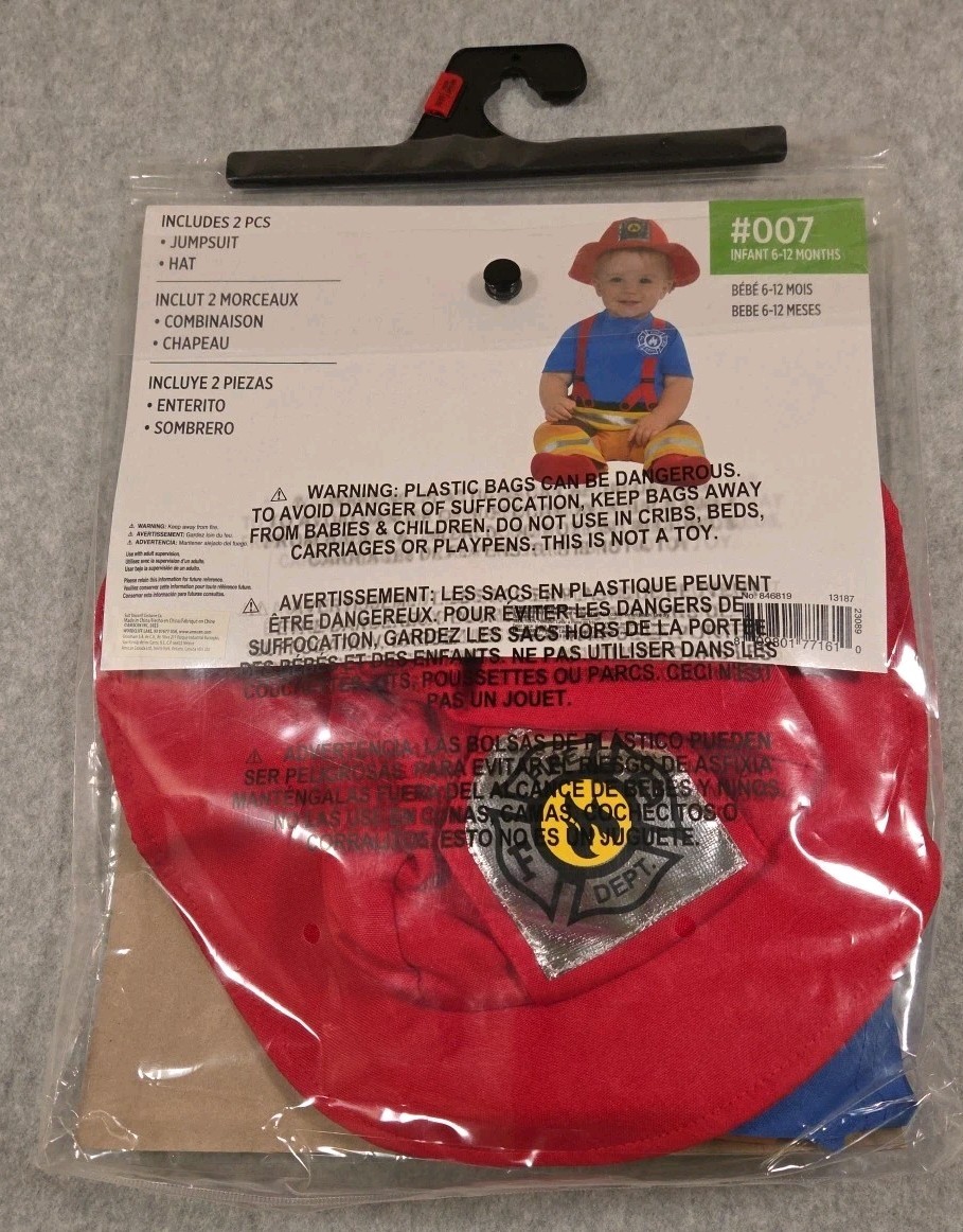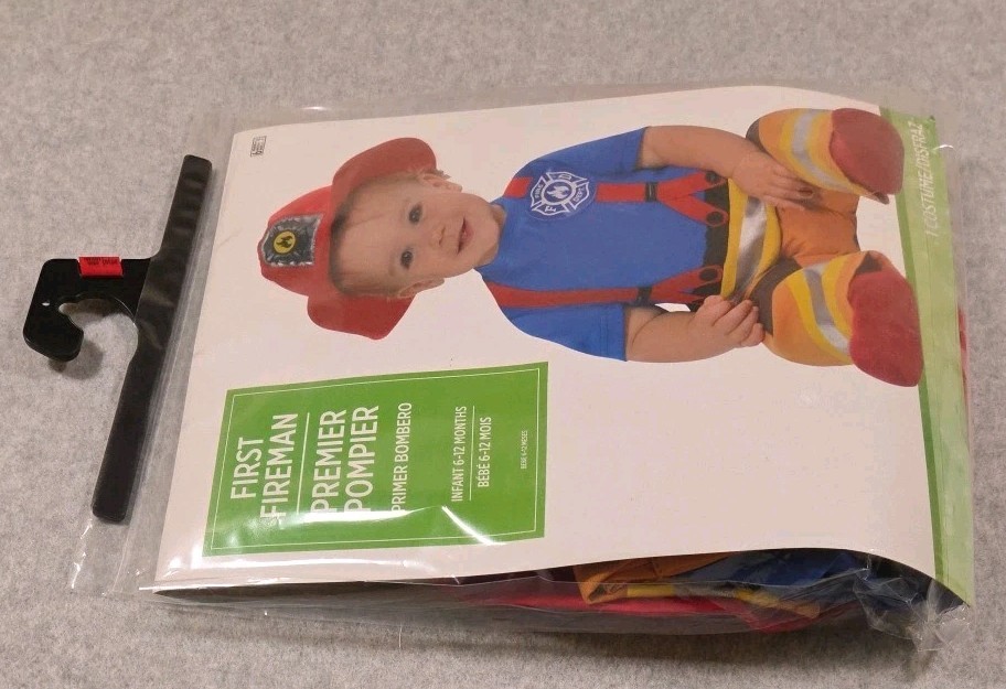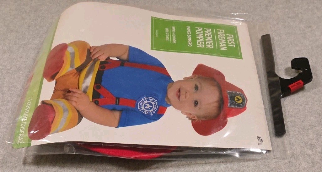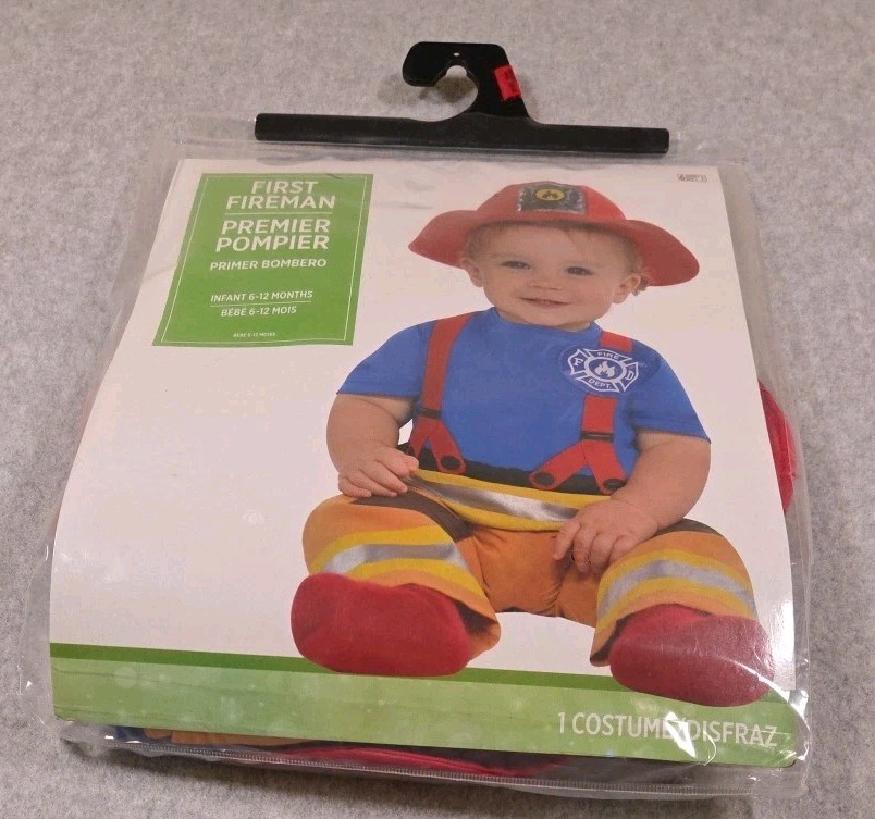 First Fireman Costume for Infant Jumpsuit Hat 6-12 Months