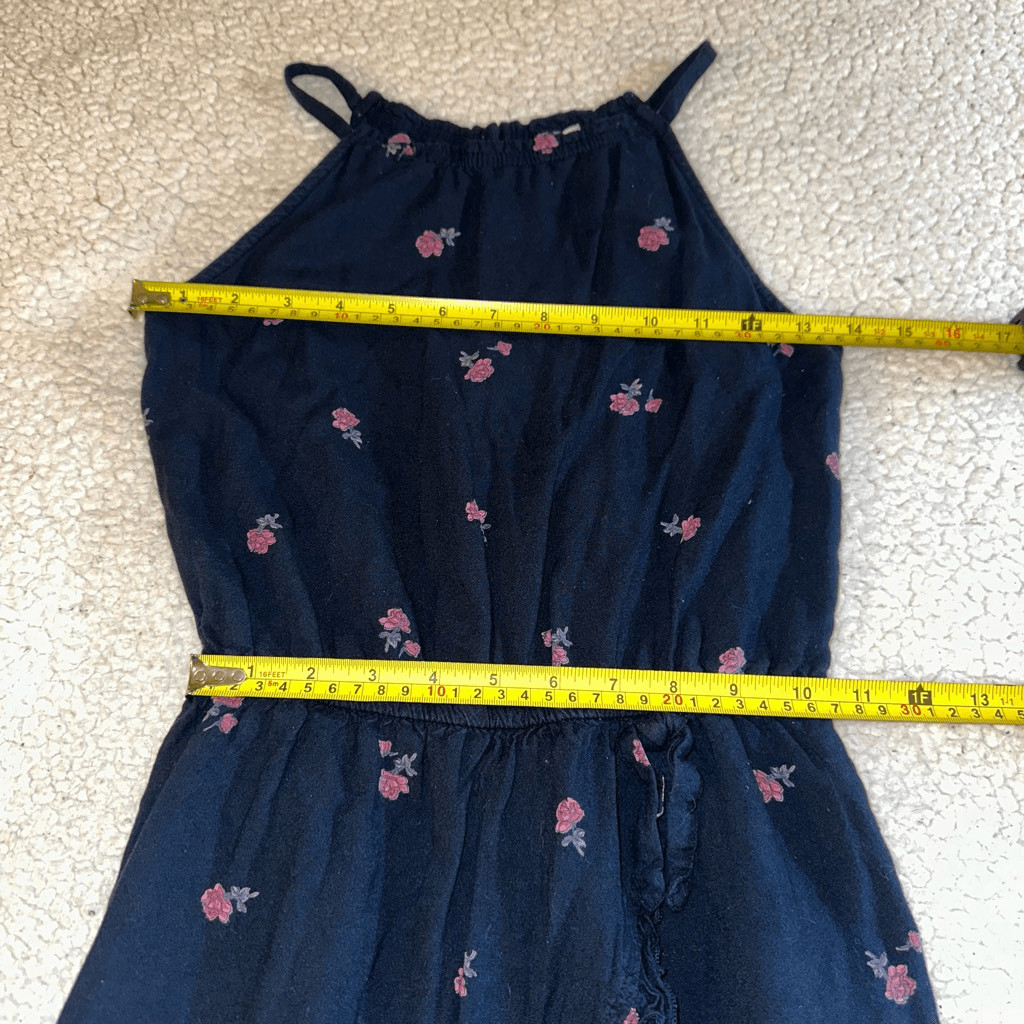 Abercrombie Kids 11/12 Navy Blue Pink Floral Ruffle Romper Spaghetti Straps EUC