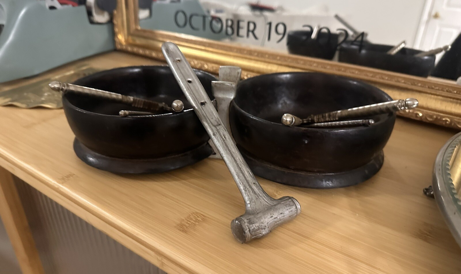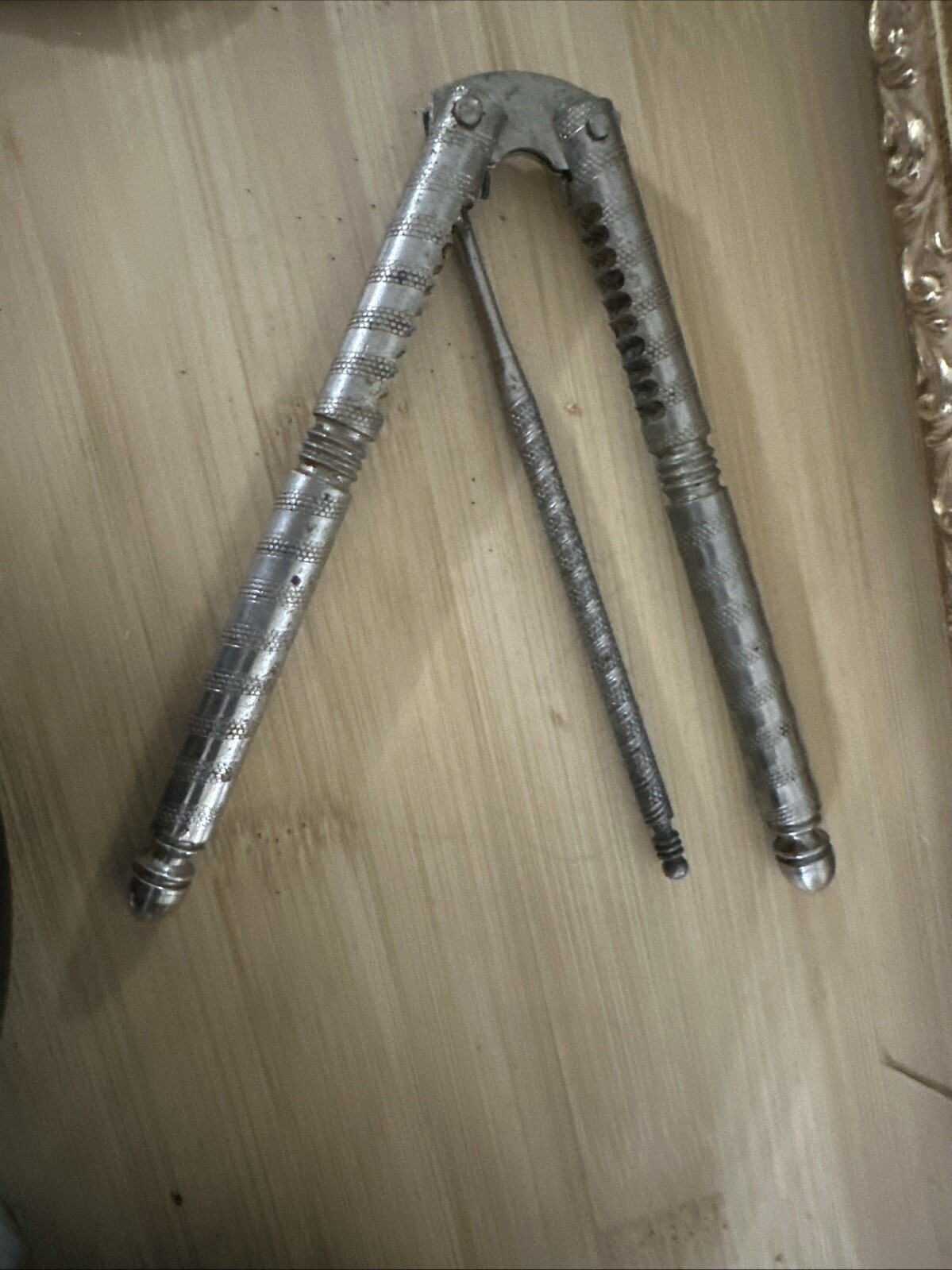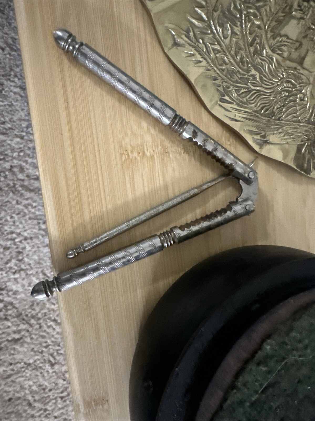 как выглядит VTG Nut Cracker Walnut Bowl Nut Bowl W/ 2 HMO Nut Crackers Picks Indiana Made фото
