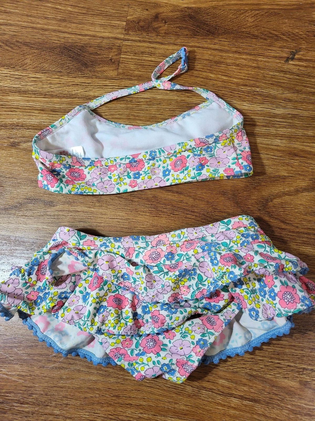 как выглядит Mini Boden Girls Swimsuit Bikini 2-3 Yrs Ditsy Floral Colorful Ruffle Beach 2 Pc фото