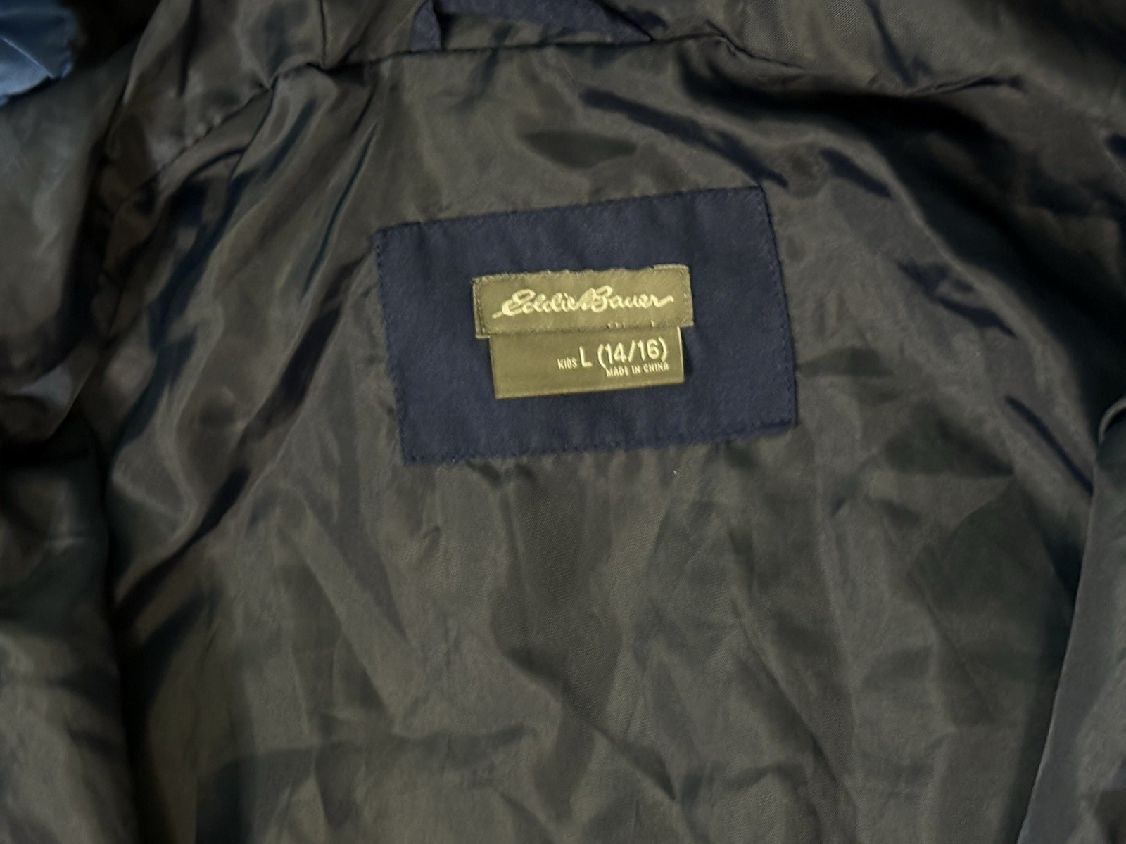 Eddie Bauer Windbreaker Jacket Full Zip Blue Hooded Youth Kids Large 14/16