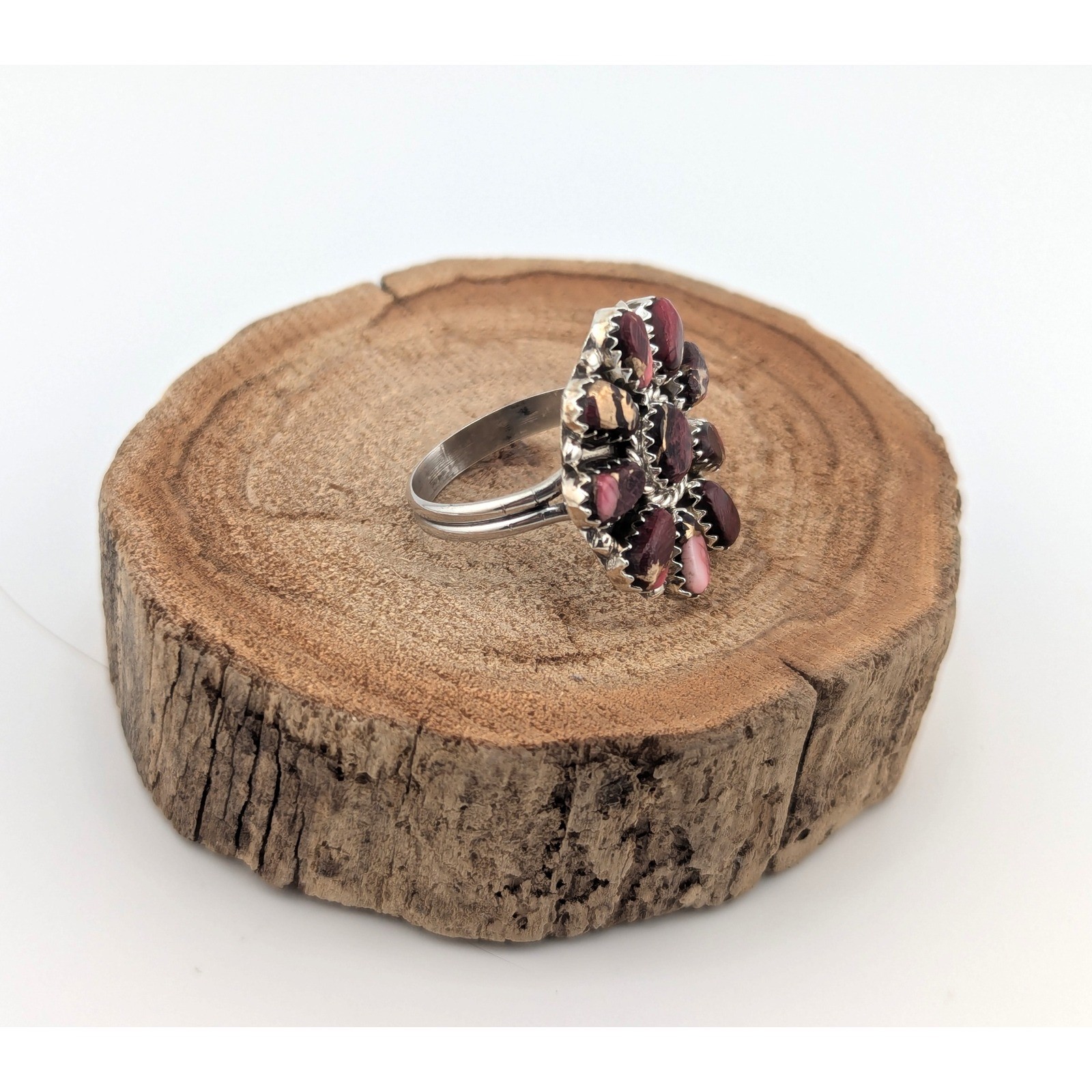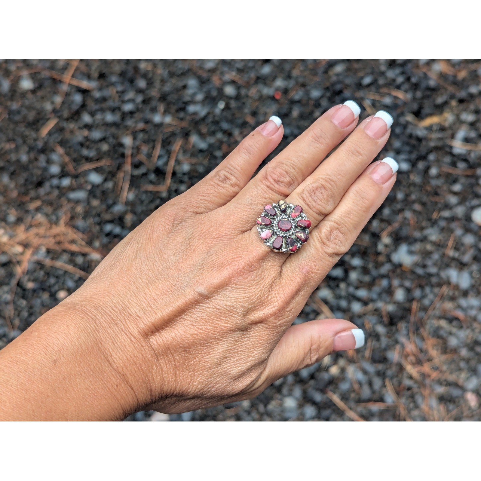 Navajo Sterling Silver Cluster Ring Dyed Rose Dahlia Stone Jewelry Sz 9.25