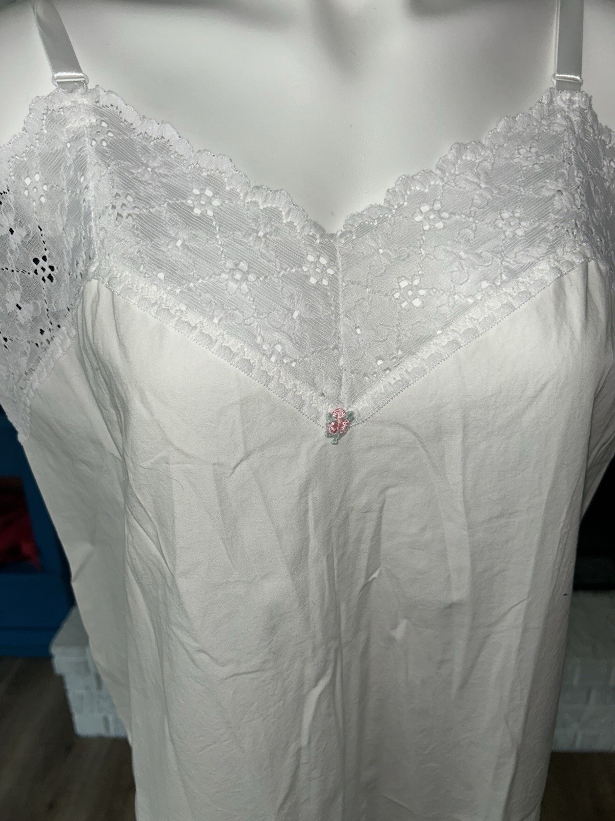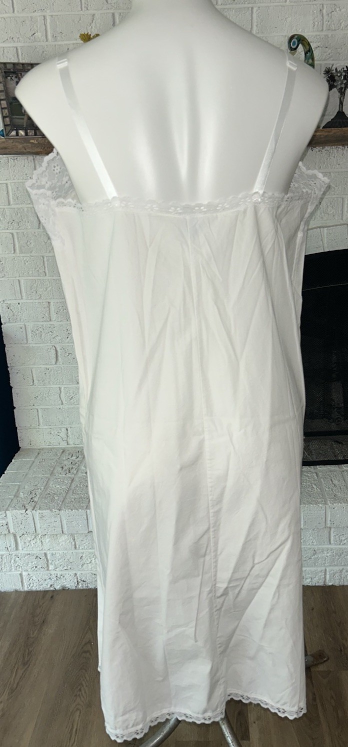 как выглядит Vintage Velrose Slip Nightgown White Cotton Bust 40/Size L Pristine фото