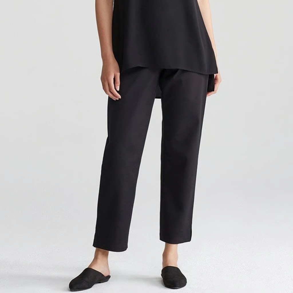 как выглядит NEW Eileen Fisher Organic Cotton Ankle Slit Pants in Black - size M P3592 фото