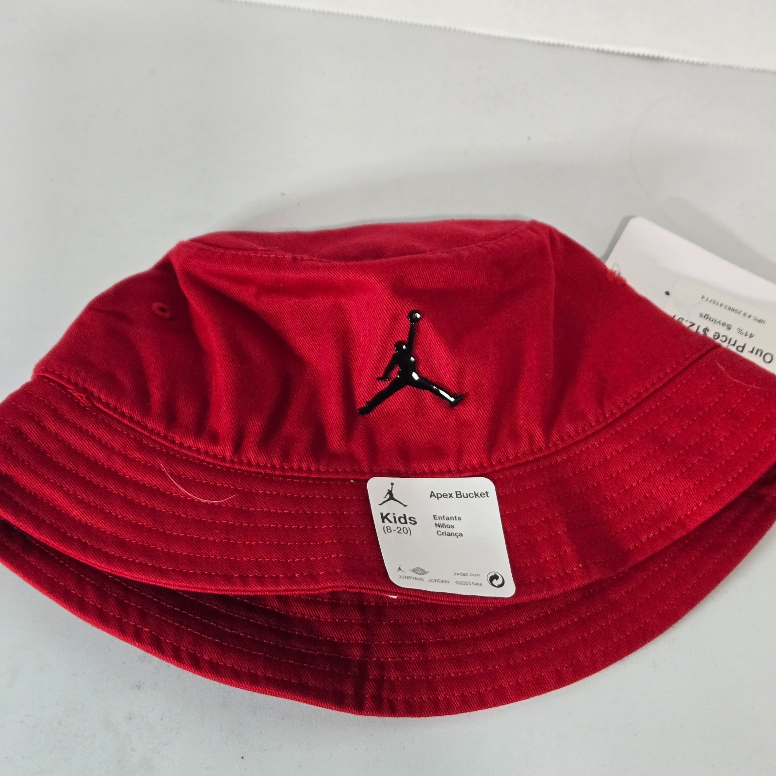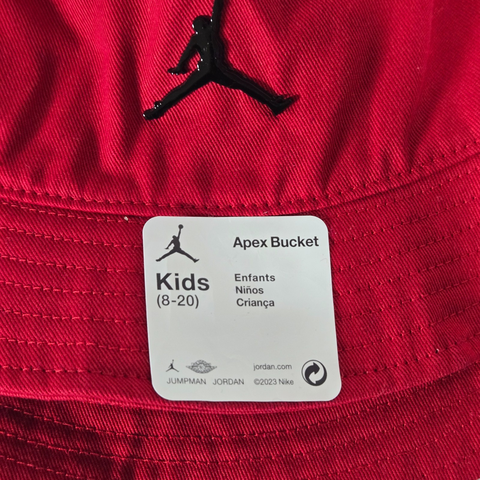 Nike Jordan Kids Bucket Hat Size 8-20 Red Apex Jumpman Logo Cotton Twill