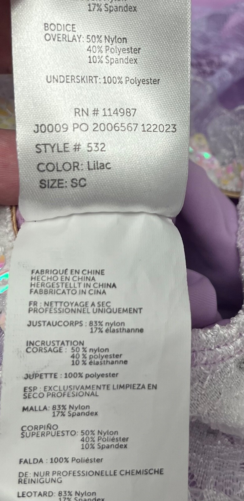 Revolution Dancewear Lavender Dress Style 532 Girls Size Small SC