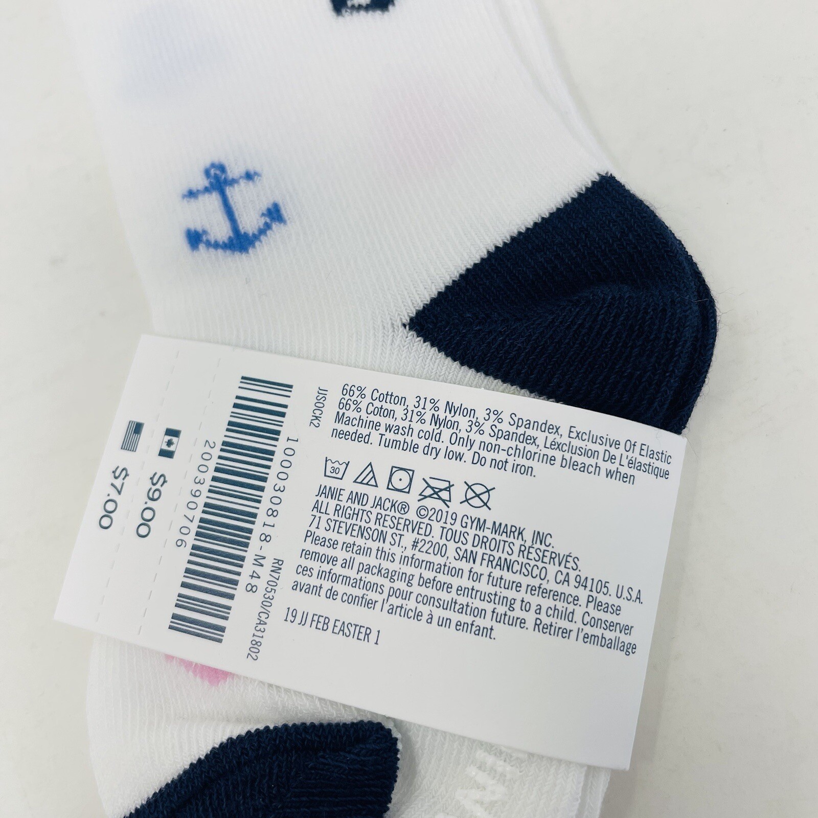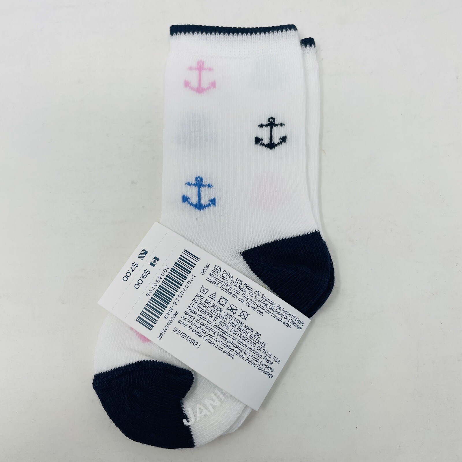 Janie and Jack Baby Boys 6-12 Months Anchor Nautical Print Crew Socks in White