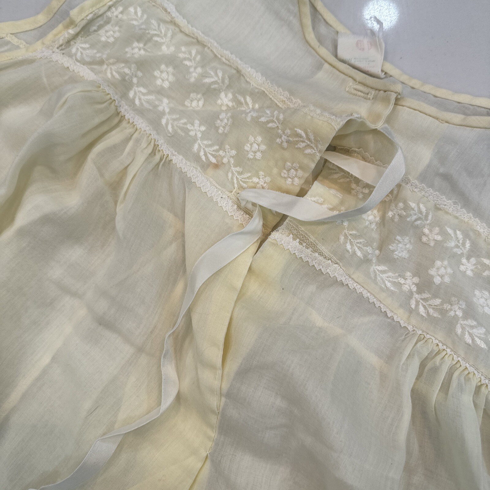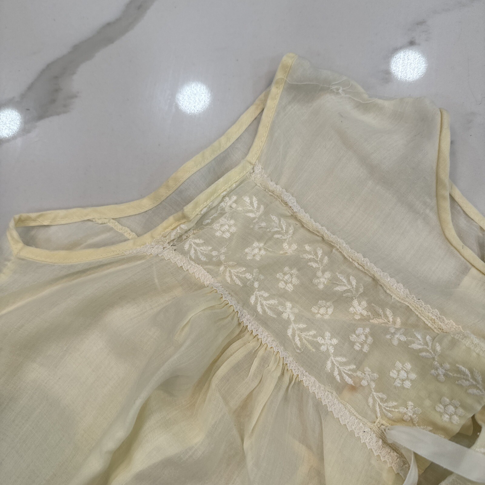 как выглядит Vintage Gaymade Yellow Embroidered Floral Nightgown Medium M Sleeveless фото