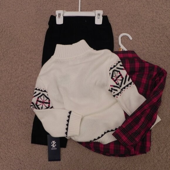 как выглядит 3 Piece Boys Sweater, Pants, Button Down Shirt Outfit - NWT - IZOD - 4T фото