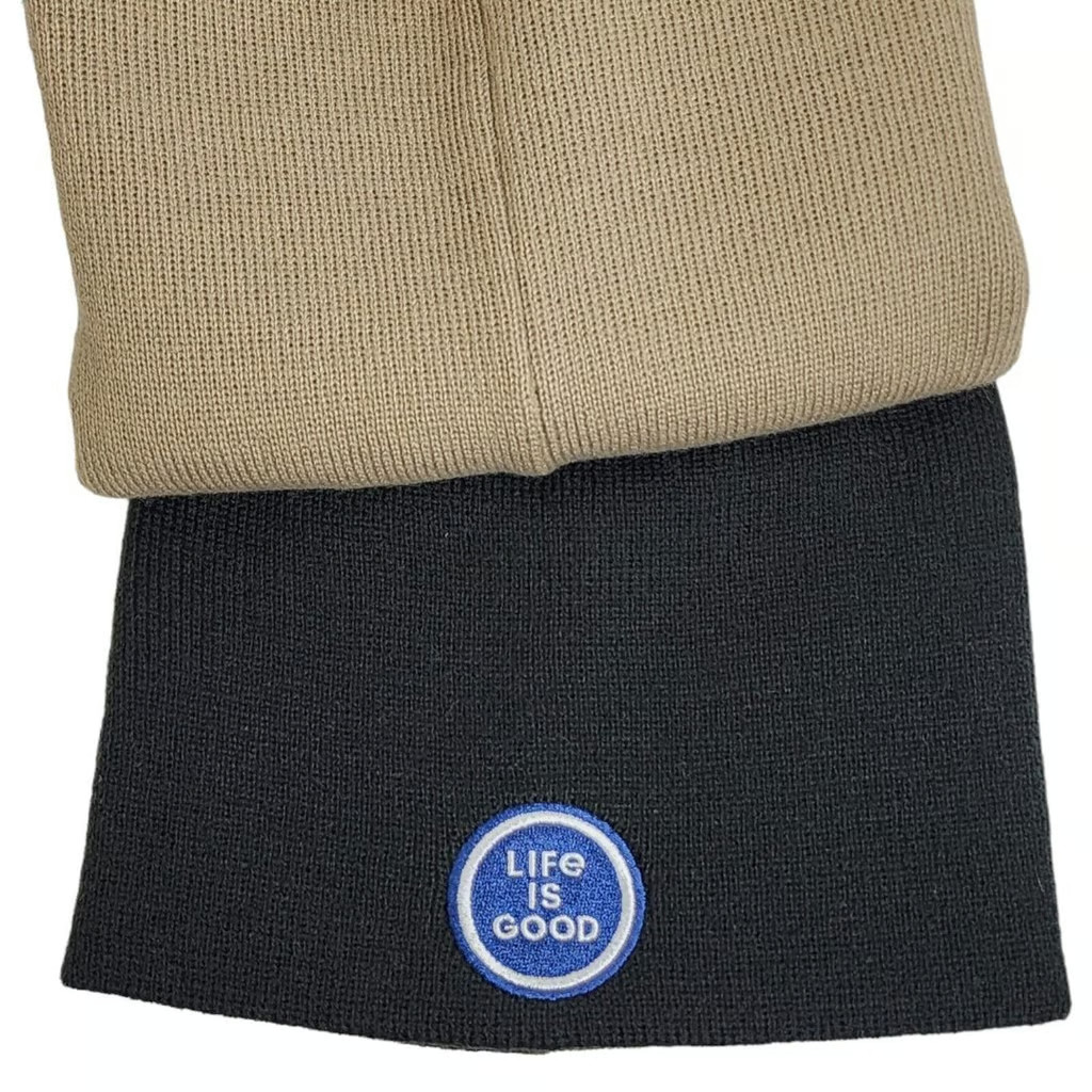 NWT Life is Good Beanie Set of 2 Logo Winter Unisex Black Khaki No Pom-Pom OS