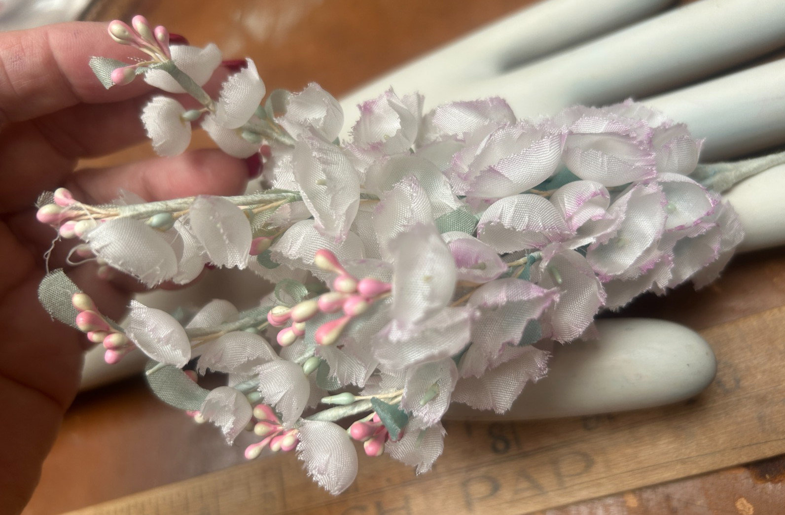 как выглядит vintg 1940s lilies of the valley flowers 2 bundles 12 branches white lilac Japan фото
