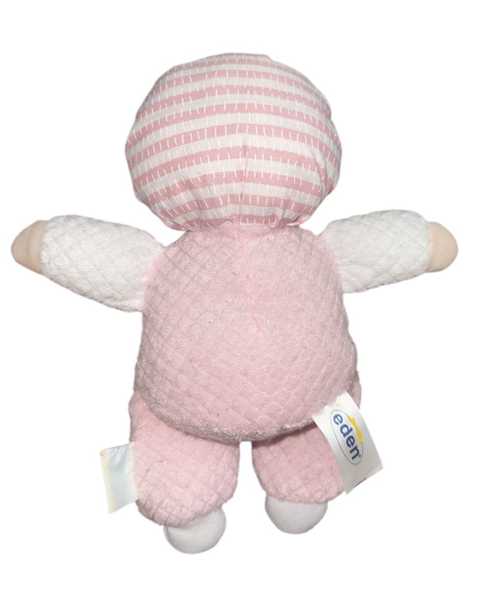 как выглядит EDEN Pink White Girl Baby Doll Soft Plush Waffle Terry Cloth Lovey 10" Blonde фото