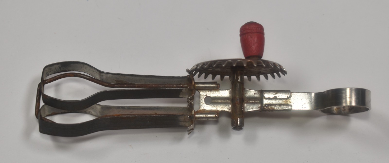 как выглядит Vintage Betty Taplin Metal Miniature Toy Egg Beater with Red Handle фото